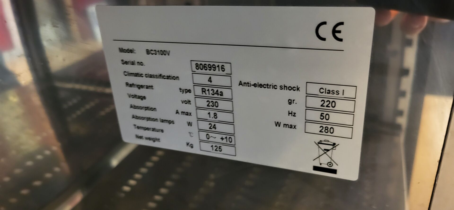1 arrière-bar 3 portes vitrées (1900 x 520) moteur logé à droite FURNOTEL BC3100V A DEMONTER PROPREMENT SANS DOMMAGE A L'IMMEUBLE