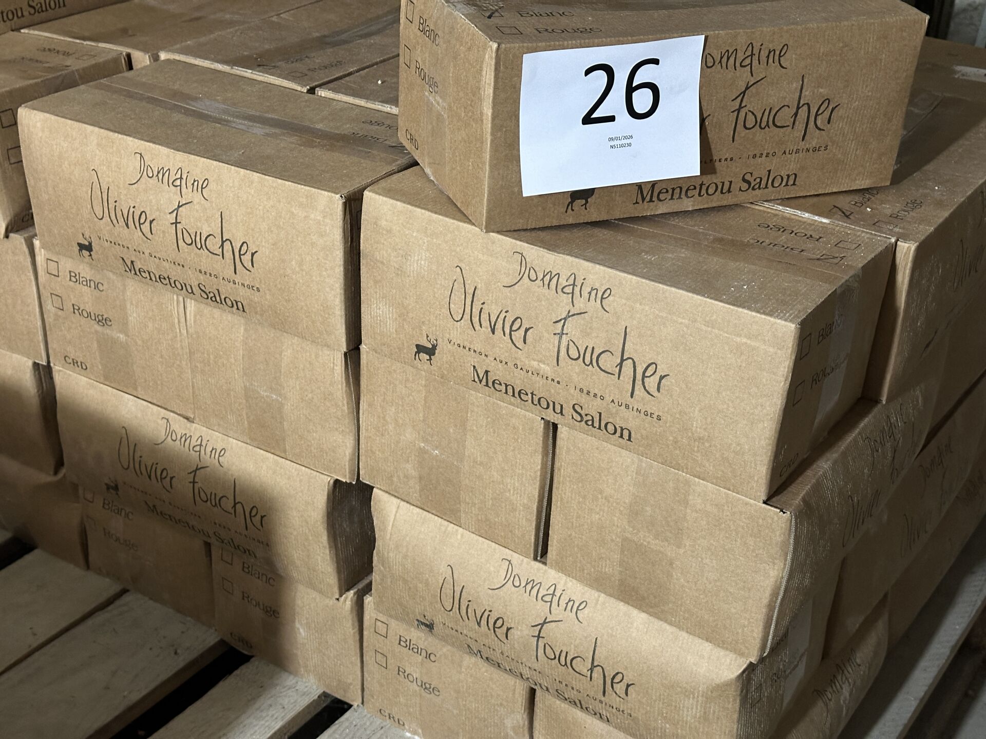 Vendu sur désignation le 14 01 2026 à 12H , 24 rue du marché commun 44300 NANTES , sur photographies. Enlèvement à NANTES (Centre) sur RDV avec la STEM. 306 bouteilles de Menetou-Salon DOMAINE OLIVIER FOUCHER 2023 ( 51 cartons)
