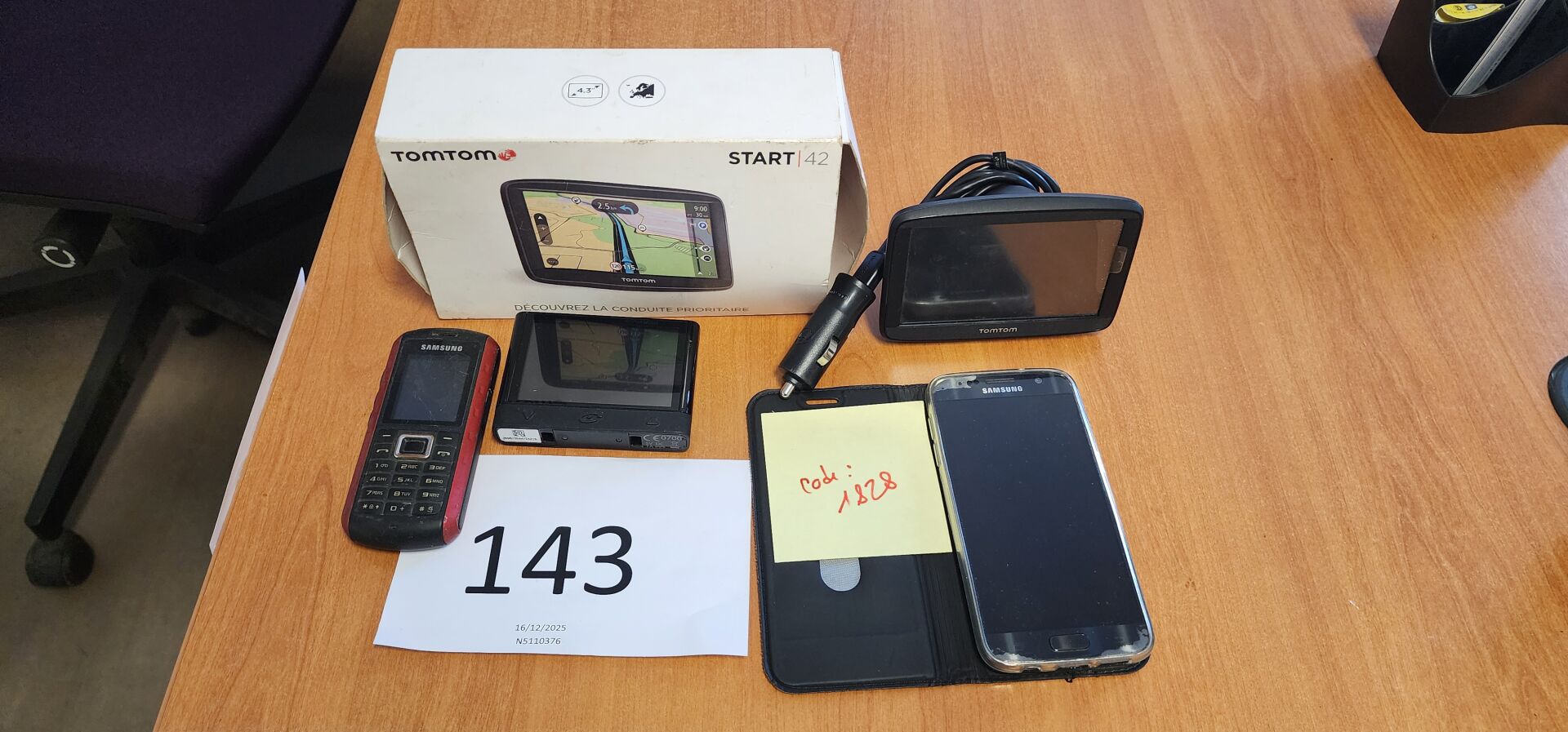 1 téléphone portable SAMSUNG Galaxy S7 (mdp 1828) 1 COYOTE, 1 GPS TOM TOM