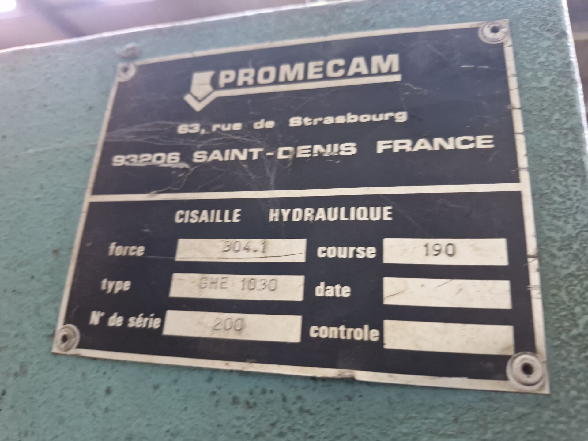 1 cisaille guillotine PROMECAM 304.1 course de 190, type GME1030, n/s : 200, 3000mm/10mm