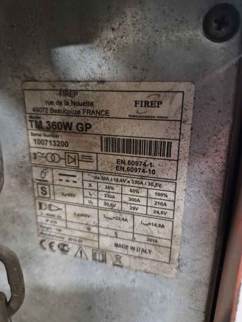 1 poste à souder semi automatique FIREP MIG MAG TM 360W GP, avec dévidoir