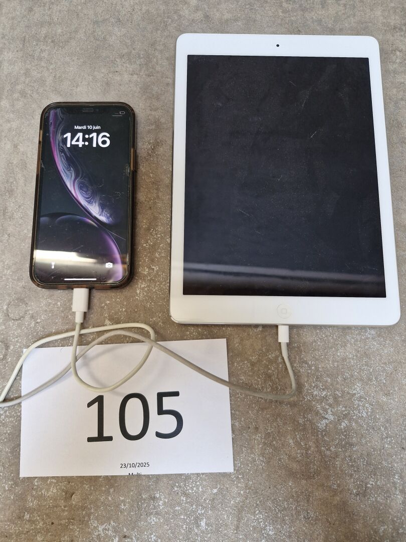 1 smartphone APPLE Iphone 11, 1 tablette numérique APPLE Ipad A1474 - N/S : DMRN4T55FK14, 1 chargeur Expédition possible en France Métropolitaine pour 29.80 €