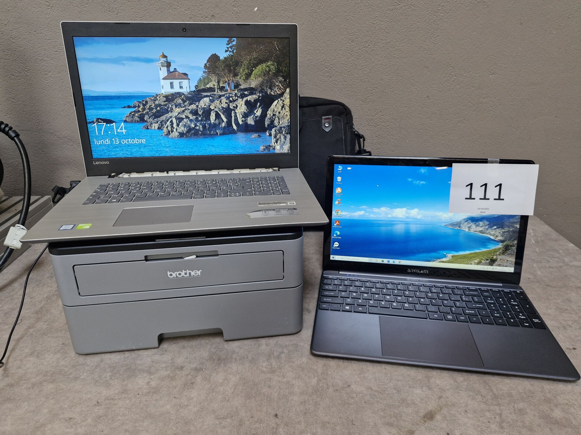 1 ordinateur portable LENOVO Ideapad 320 - S/N : PF11YX3B (2018), état moyen, core i7 (mdp inconnu) 1 ordinateur portable TECLAST F15S (sans chargeur) 1 imprimante BROTHER HL-L2310D