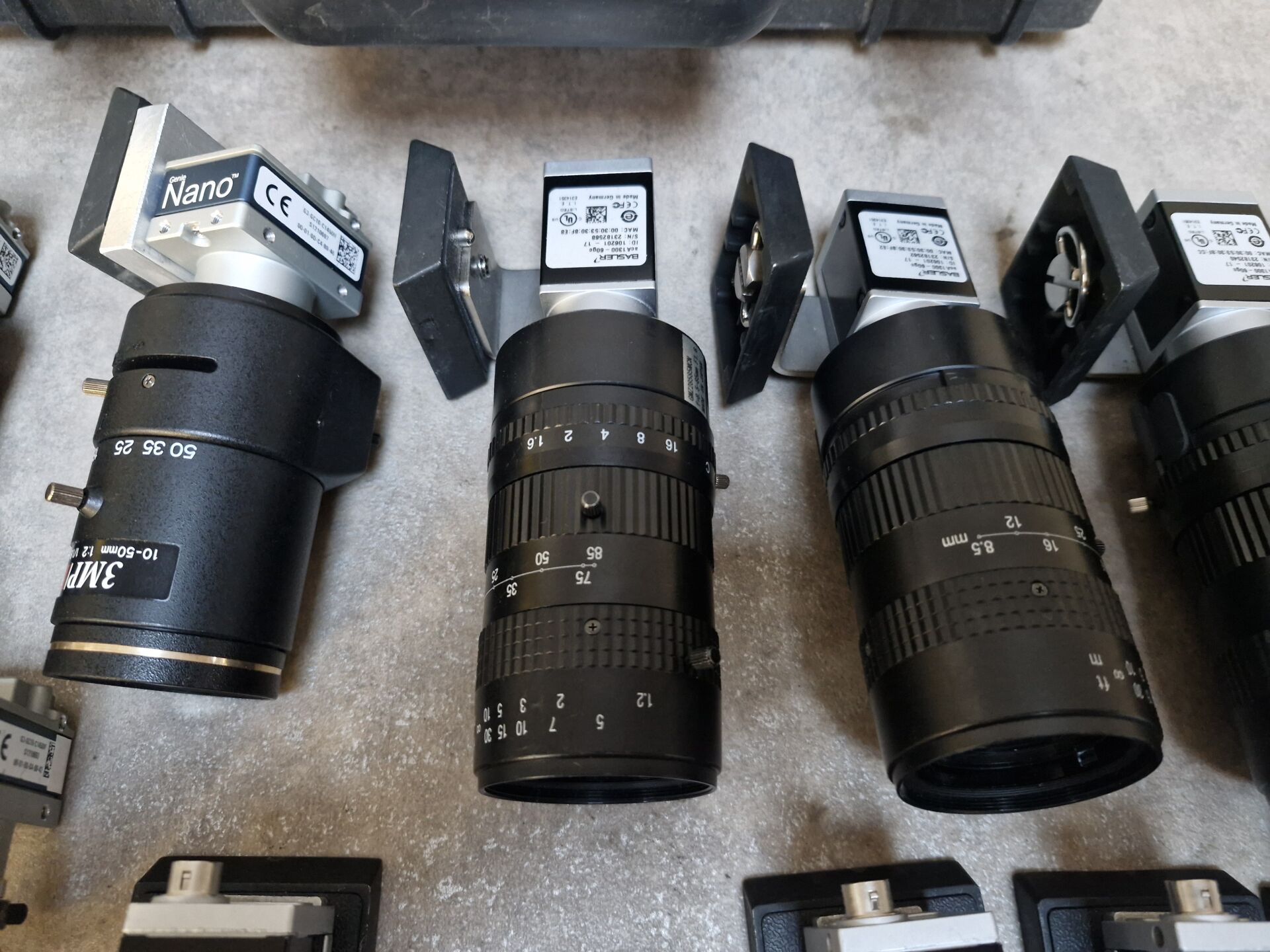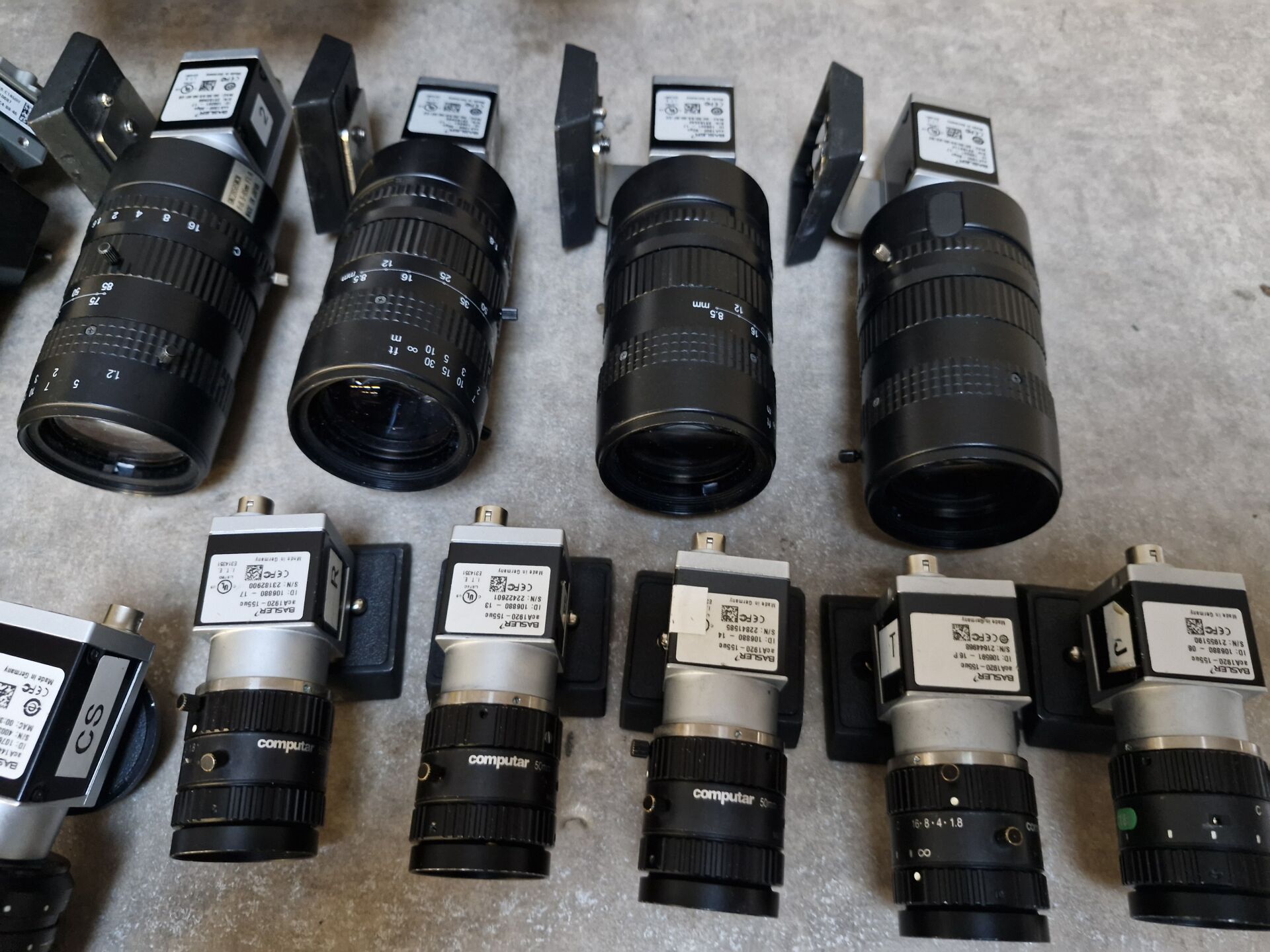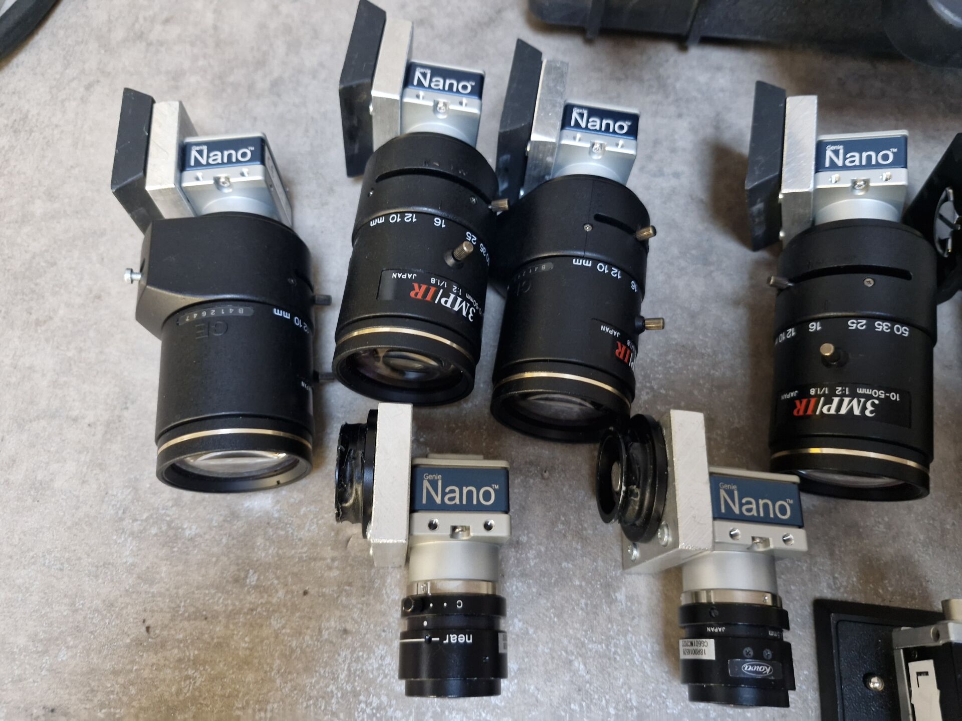 Système dit "Challenge Vidéo", composé de : 17 caméras dans mallette plastique, leurs supports de fixation et caches métalliques dont : - 6 caméras GENIE Nano G3.GC10.C1450IF (2 avec objectifs 1.4 / 3,5mm et 4 avec objectif 3MP/IR 10-50mm 1:2/1.8) - 11 caméras BASLER acA1300-60gc avec divers objectifs Expédition possible France métropolitaine 41.90 € (+, vendu sur désignation, à prendre à NANTES -Beaulieu- sur RDV) : 3 unités centrales, 3 onduleurs TECHNOWARE Era Plus 750, 1 écran HP 2311x, 1 clavier LOGITECH, 1 ensemble de câbles d'alimentation et de liaison