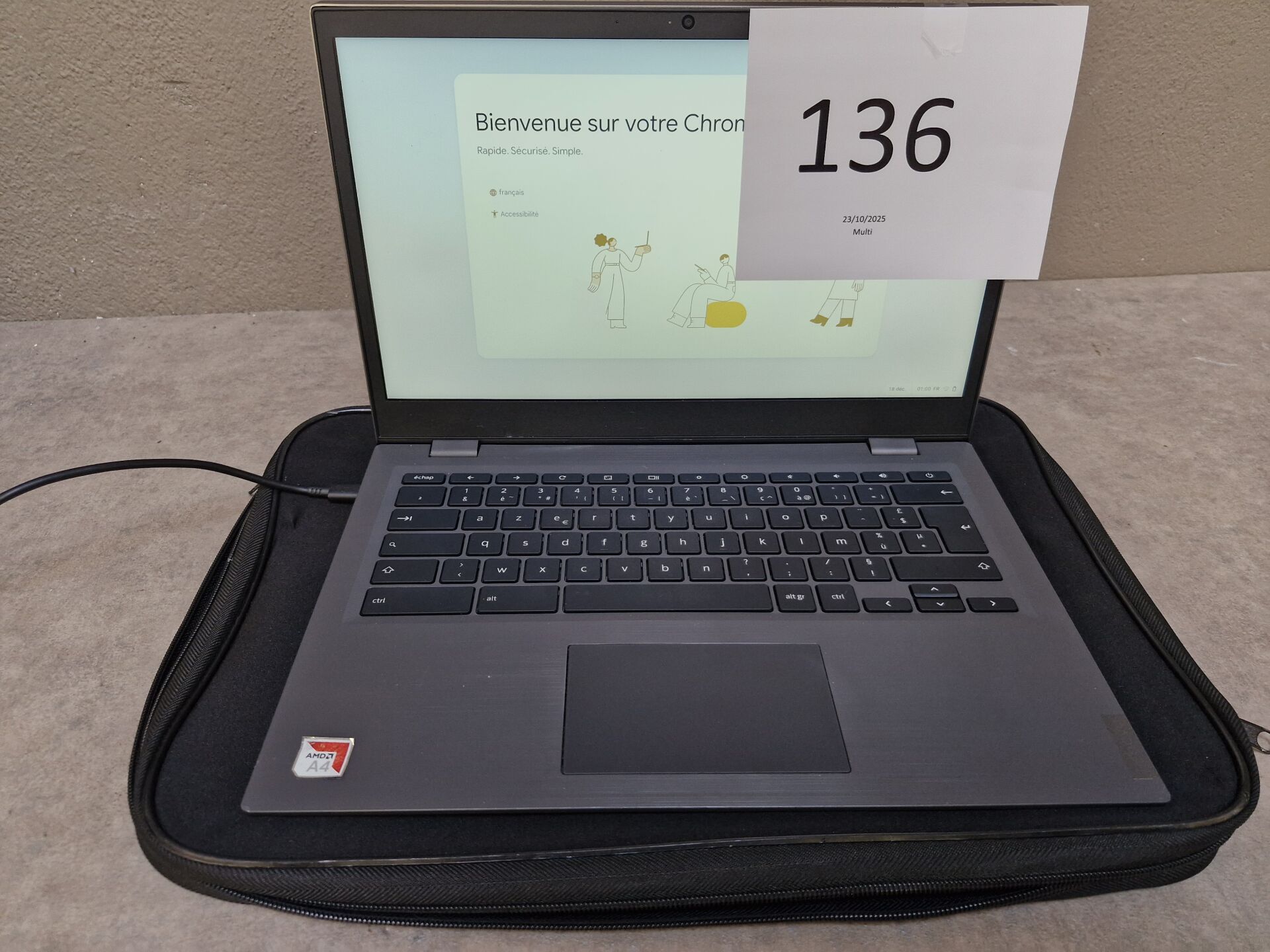 1 ordinateur portable LENOVO ChromeBook AMD A4 - S/N : MP-1V2YJA 20/09 (réinitialisé) avec sacoche Expédition possible en France Métropolitaine pour 31.45 €