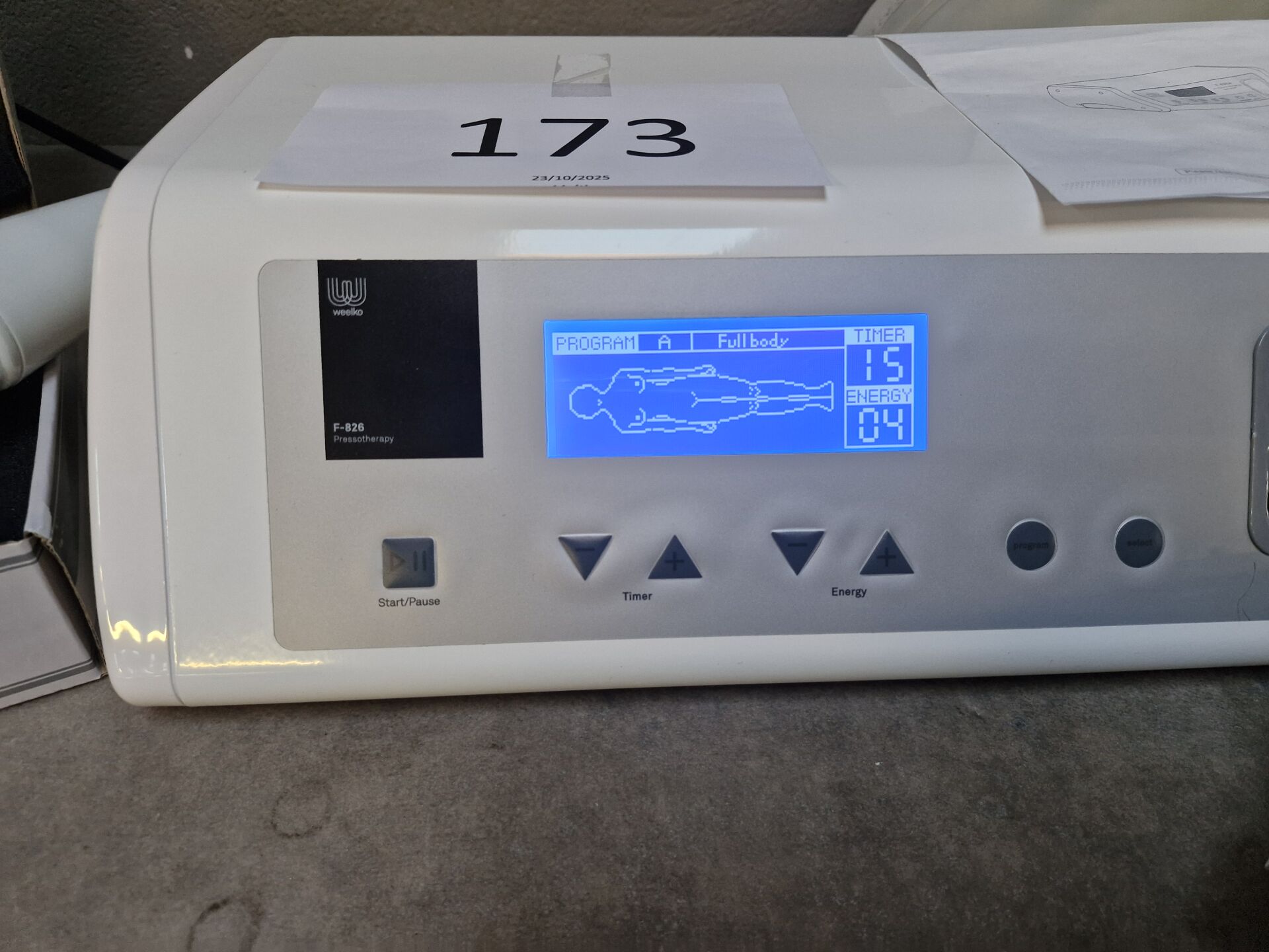 1 appareil de pressothérapie WELKO F-826 - N/S : EX 8112029 avec accessoires et notice d'utilisation