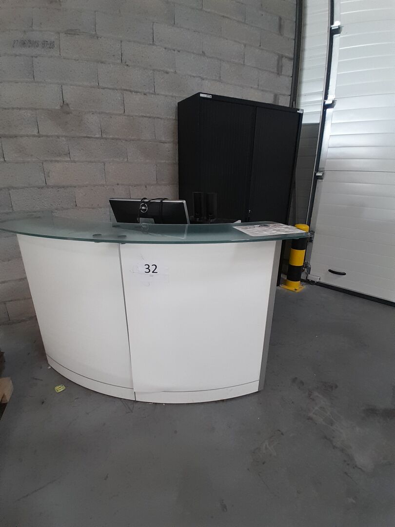 Vendu sur désignation le 23 10 2025 à 10h30, visible le 23/10/2025 sur RDV à 9h à SAINT HERBLAIN , Enlèvement le 30/10/2025 de 9h à 11h, frais mise à disposition 10 TTC par lot 1 banque d'accueil mélaminé blanc (état moyen-graffiti) 1 armoire métal noir à rideaux coulissants