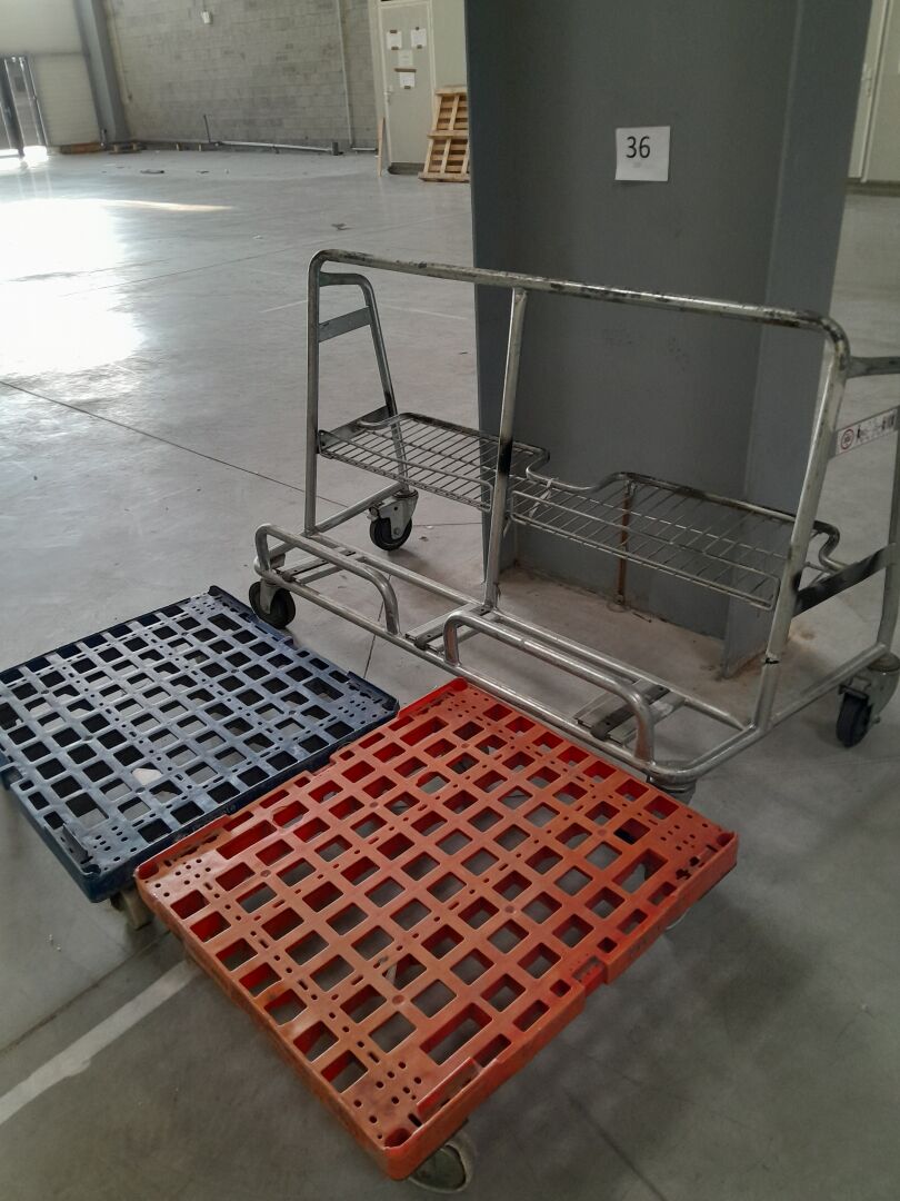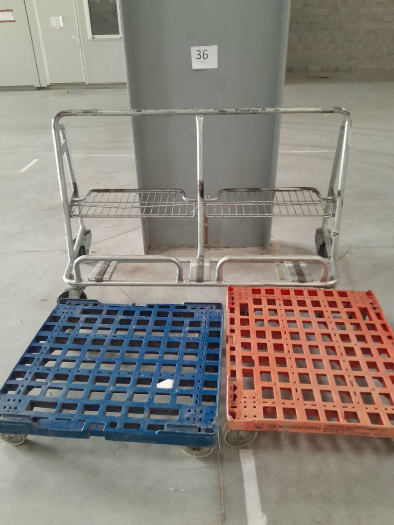 Vendu sur désignation le 23 10 2025 à 10h30, visible le 23/10/2025 sur RDV à 9h à SAINT HERBLAIN , Enlèvement le 30/10/2025 de 9h à 11h, frais mise à disposition 10 TTC par lot 1 chariot à colis sur roulettes charge maxi 300 kg, 2 chariots à roulettes PVC bleu et orange 81 x 72 cm