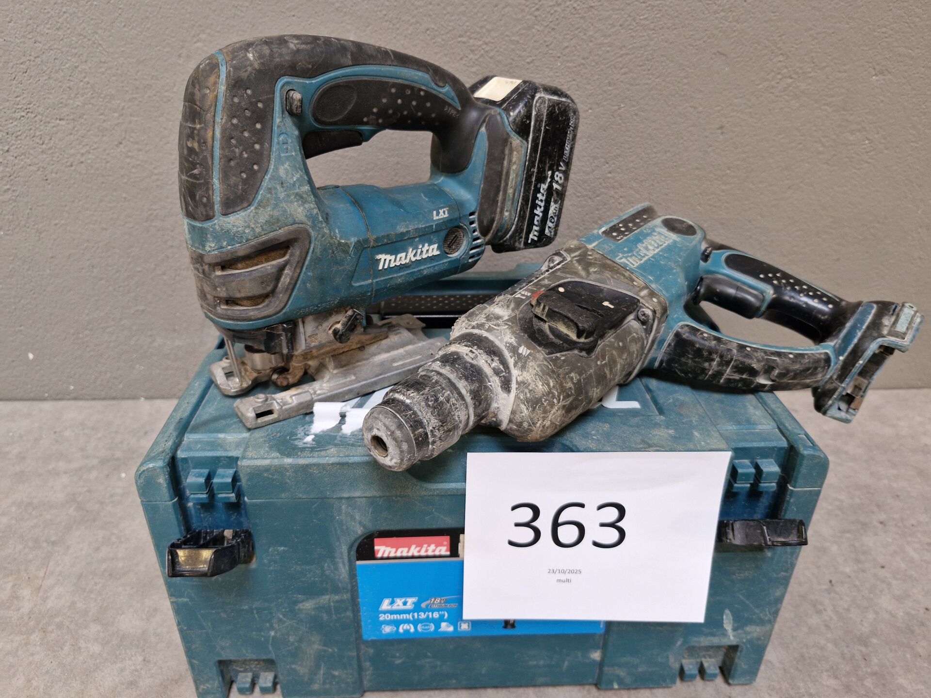 2 outils autonomes MAKITA :1 perceuse DHR202, 1 scie sauteuse DJV180 2 batteries 18v, sans le chargeur , en coffret