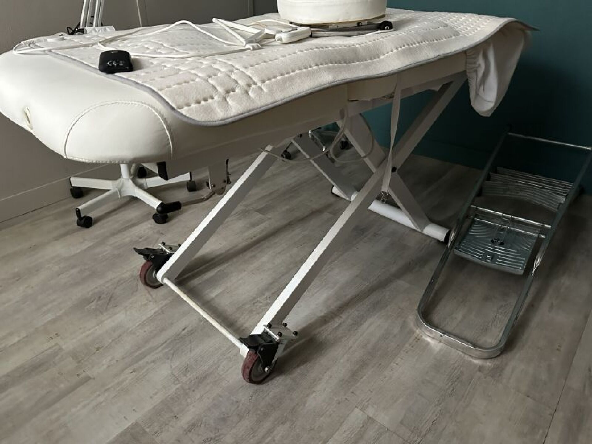 Vendu sur désignation le 23 10 2025 à 10h30 24 rue du marché commun 44300 Nantes, visible le 23 10 2025 sur rdv à 9h NANTES (Centre), Enlèvement le 30 10 2025 à 10h30 , frais de mise à disposition 10 € 1 meuble bas 3 portes 5 tiroirs en bois, surmonté d'étagère (210 x 46) 2 fauteuils simili cuir rouge, 1 étagère métal vert IKEA, 1 étagère métal/bois IKEA, 2 étagères bois sur équerres, 1 grand miroir, cadre mélaminé bois, pose horizontale, 1 lit de soins motorisé MDA / WEELKO BARCELONA S.L. - N/S : 18121360, 1 couverture chauffante, 2 tabourets tournants/roulants, 1 marche-pied mélaminé noir, 1 chaise plastique pliante, 1 enceinte bluetooth 1 lit de soins motorisé MDA / WEELKO BARCELONA S.L, 1 couverture chauffante, 1 tabouret tournant/roulant, 1 marche-pied mélaminé noir hors service, 2 loupes lumineuses sur bras articulé mobile 1 ensemble d'objets décoratifs dont tableaux, miroirs, ...