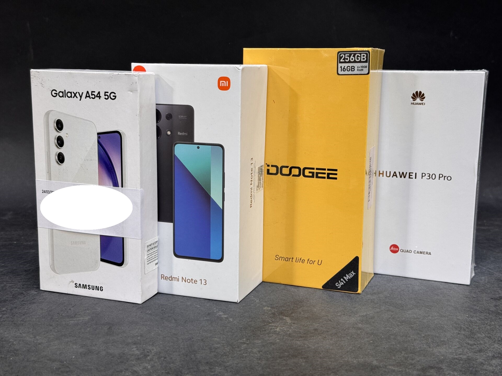 4 TELEPHONES PORTABLES : SAMSUNG GALAXY A54 / REDMI NOTE 13 / HUAWEI P30 PRO / DOOGEE S41 EXPEDITION POSSIBLE (ce lot chez vous en France métropolitaine pour 26,50€) Lot issu de colis non réclamés : état de fonctionnement non garanti, ( possible produits sans scellé, traces d'usage et manque d'accessoires)