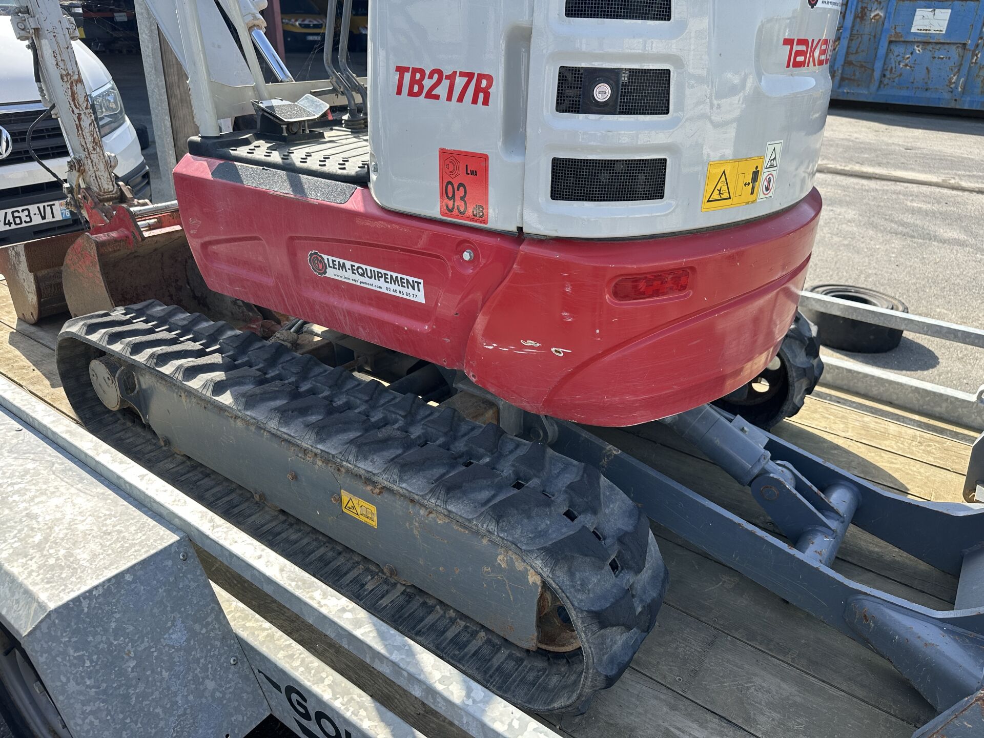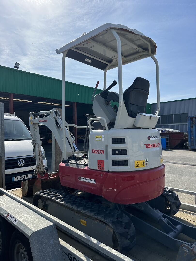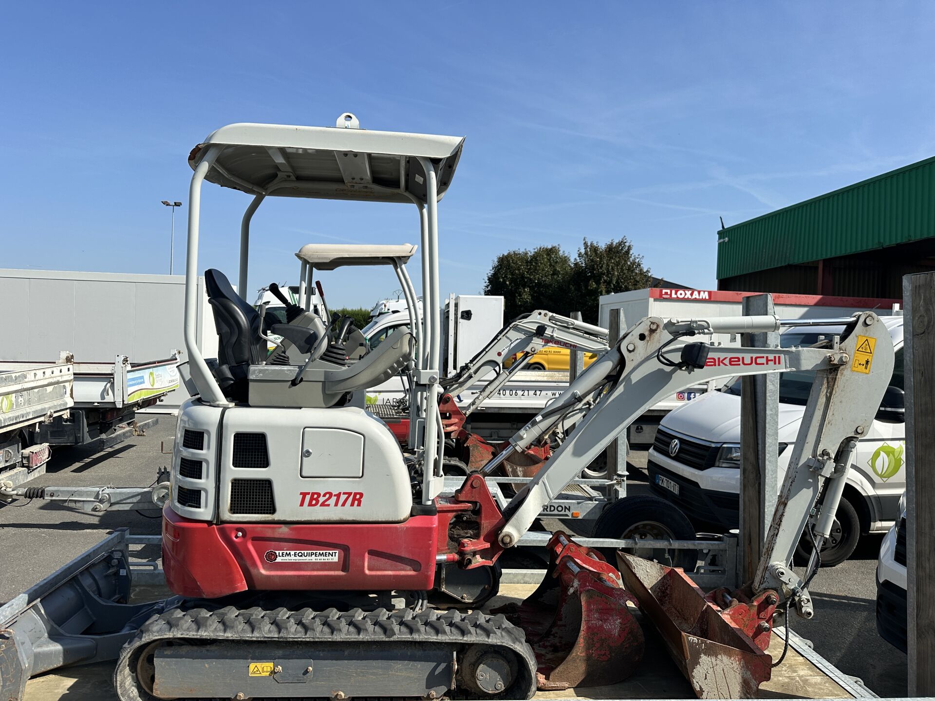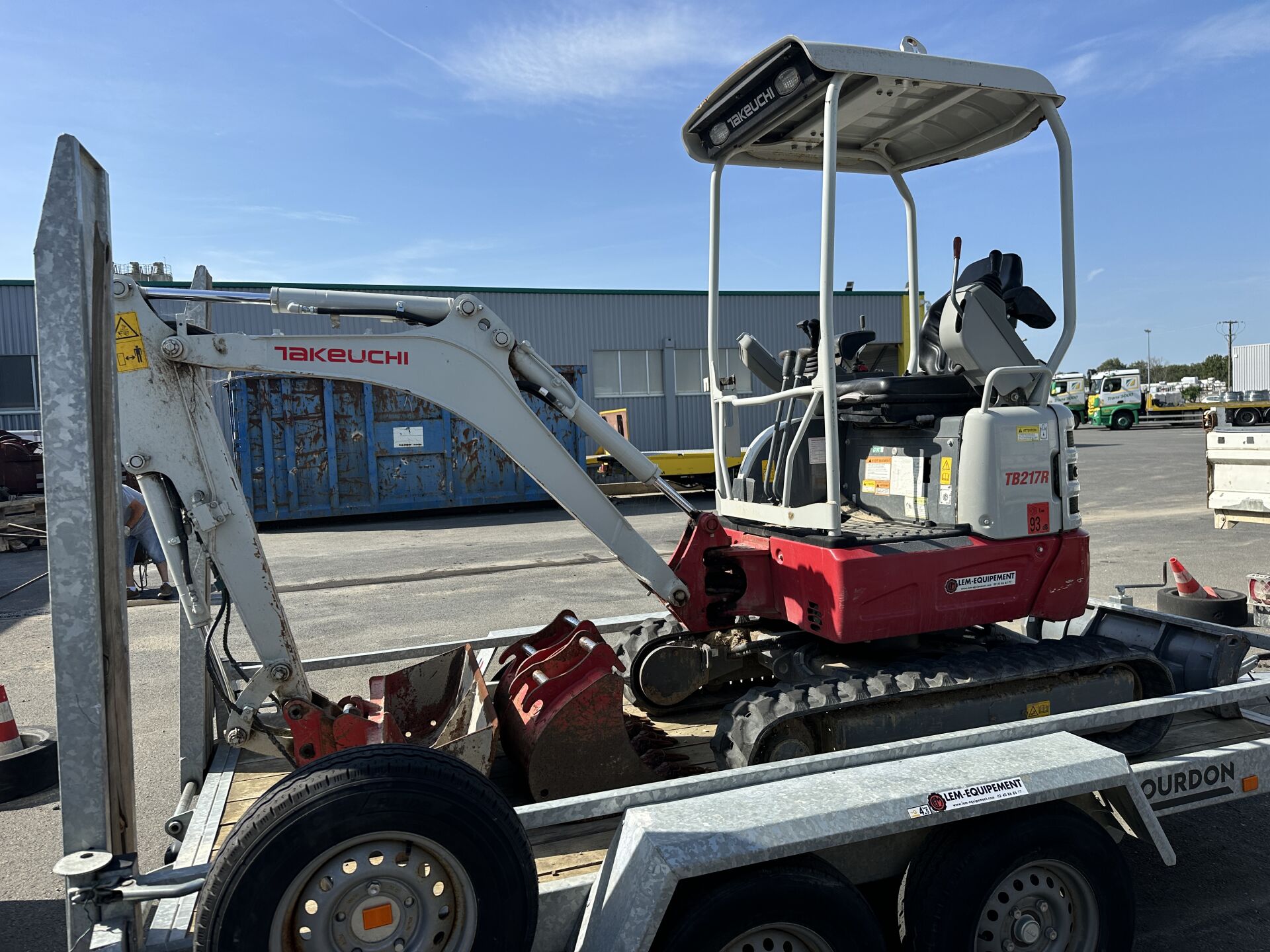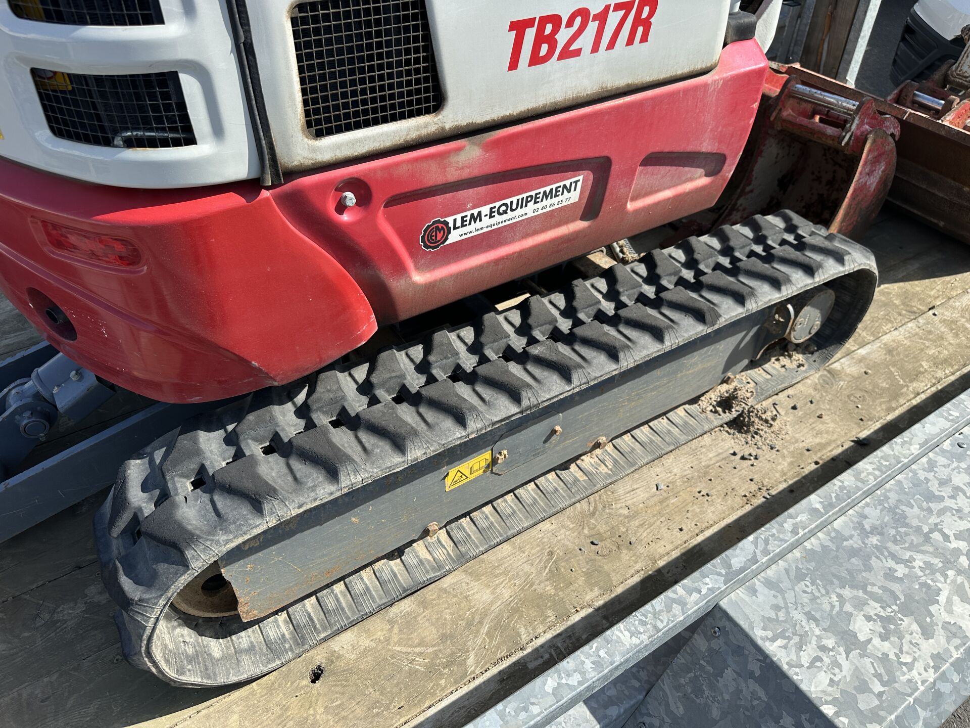 1 mini pelle TAKEUCHI sur chenille caoutchouc modèle TB217R n°215005322, de 2021 compteur = 509 heures avec 3 godets MARTIN de 300, 450 et 1000 mm et lame de 1000 et attache rapide MARTIN VENDU SANS LA REMORQUE- VENDU SANS CLE- PREVOIR UN BOOSTER. FRAIS VOLONTAIRES 18 % HT