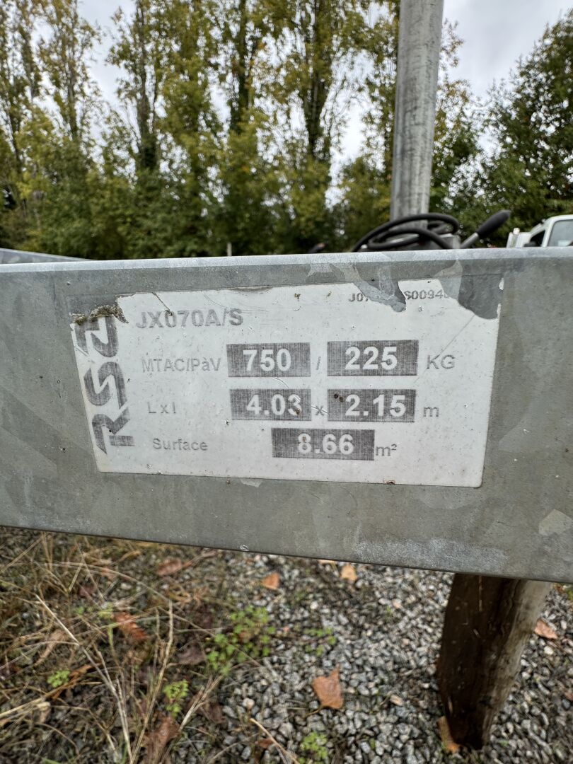 REMORQUE AVEC FIV ET NUMERO DE FORMULE. PLATEAU BOIS- LONG: 3000- LARG: 1700. LONGUER TOTALE: 4030- LARGEUR: 2150. PAV: 225 KGS- MTAC: 750 KGS. FICHE ELECTRIQUE DE RACCORD AU VEHICULE EN MAUVAIS ETAT- MANQUE LA ROUE JOCKER. FRAIS JUDICIAIRES 11.9 % HT