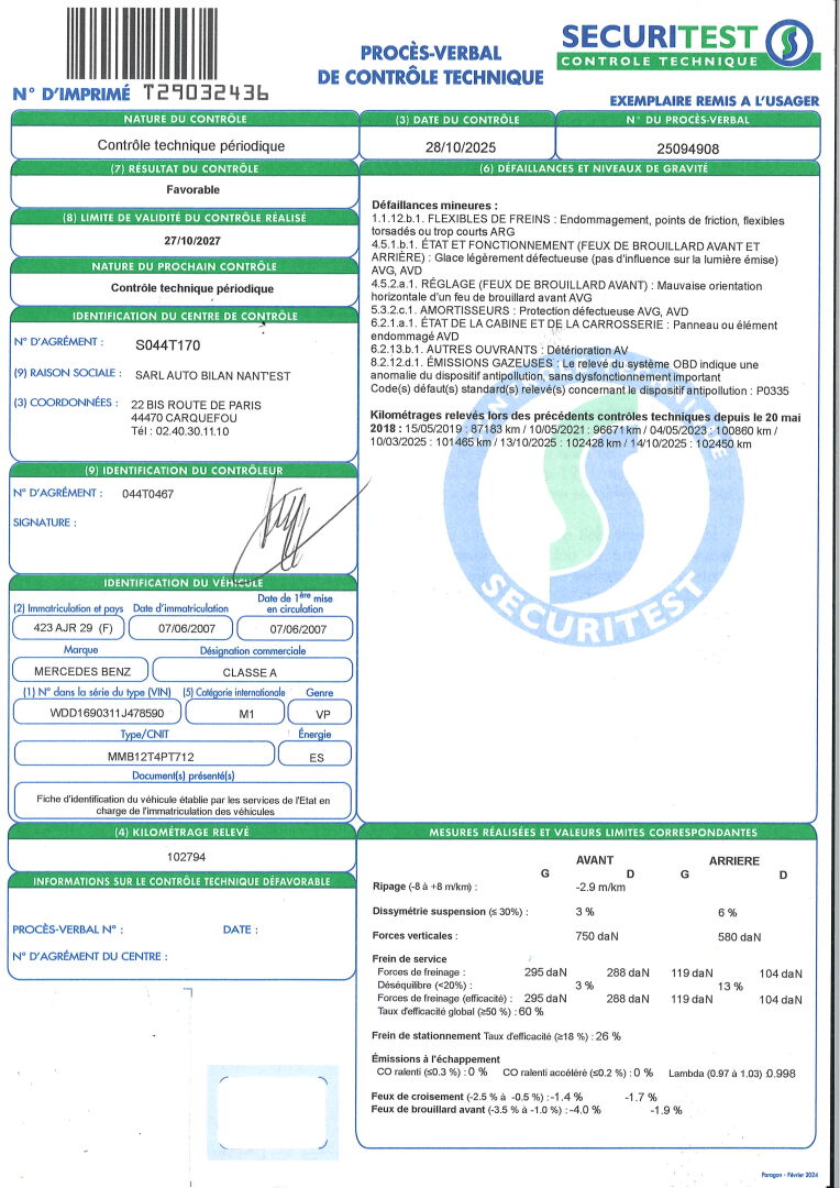 FIV AVEC NUMERO DE FORMULE. BVM5- CLIM- RADIO- VITRES ET RETROS ELECT. PLASTIQUES RAYES ET TACHES- PAS D'AFFICHAGE SUR L'ECRAN DE LA RADIO- SIEGES EN SIMILI USES. FROTTEMENTS PARE CHOCS AV ET AR- CHOCS SUR LE PARC CHOCS AR- ENFONCEMENTS AILE AVD- RAYURES D'USAGE. DEFAILLANCES MINEURES: FLEXIBLE DE FREIN ENDOMMAGE OU TROP COURT- GLACE DES FEUX DE BROUILLARD AVG ET AVD DEFECTUEUSES- PROTECTIONS DES AMORTISSEURS AVG ET AVD DEFECTUEUSES- DETERIORATION OUVRANT AV- ANOMALIE DU SYSTEME ANTIPOLLUTION. FRAIS VOLONTAIRES 18 % HT