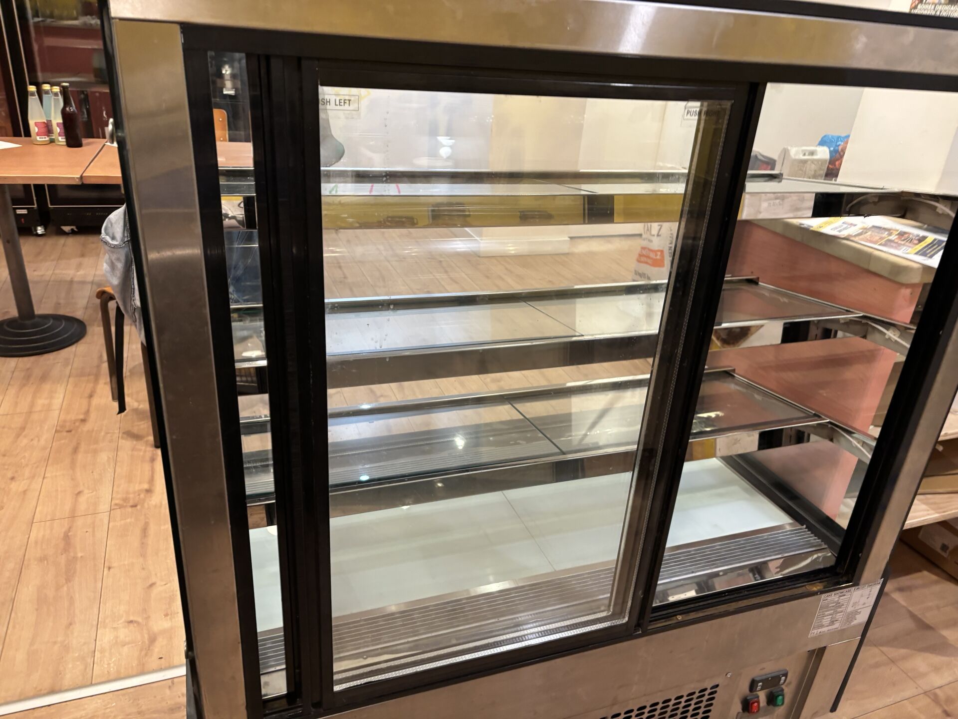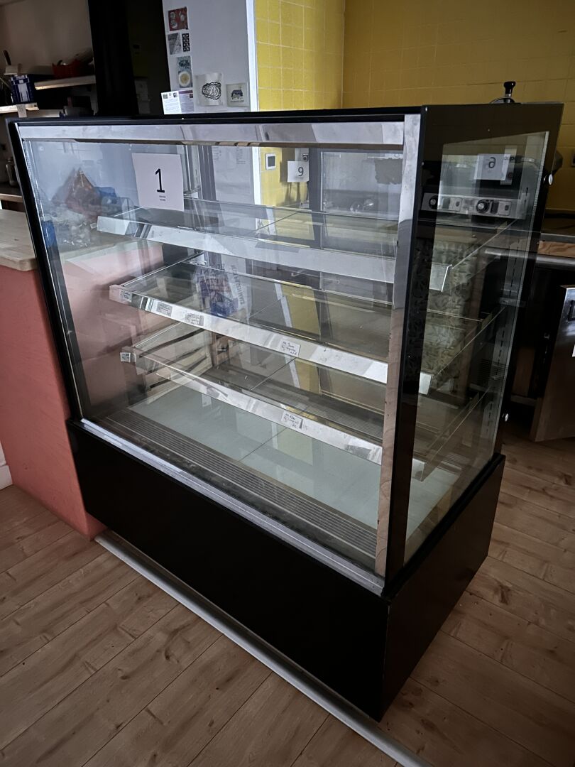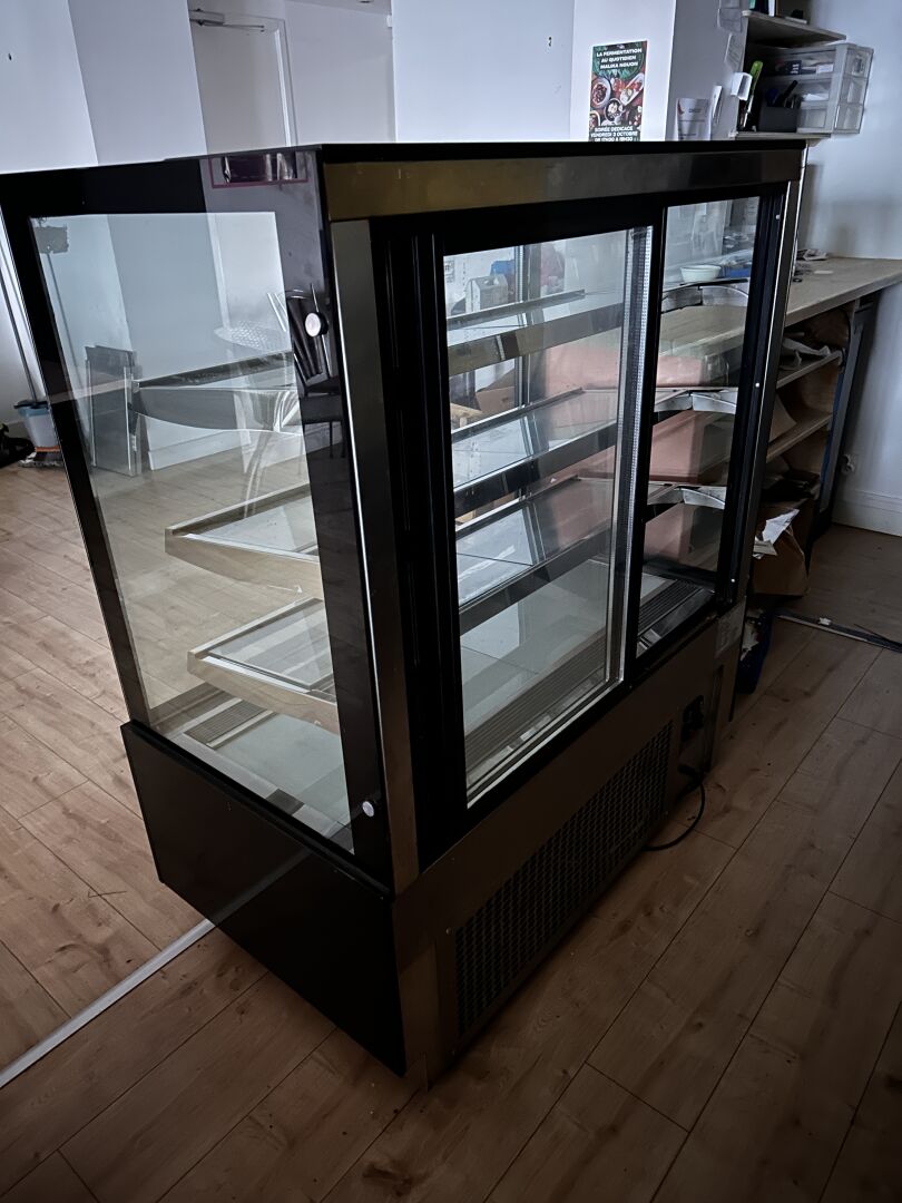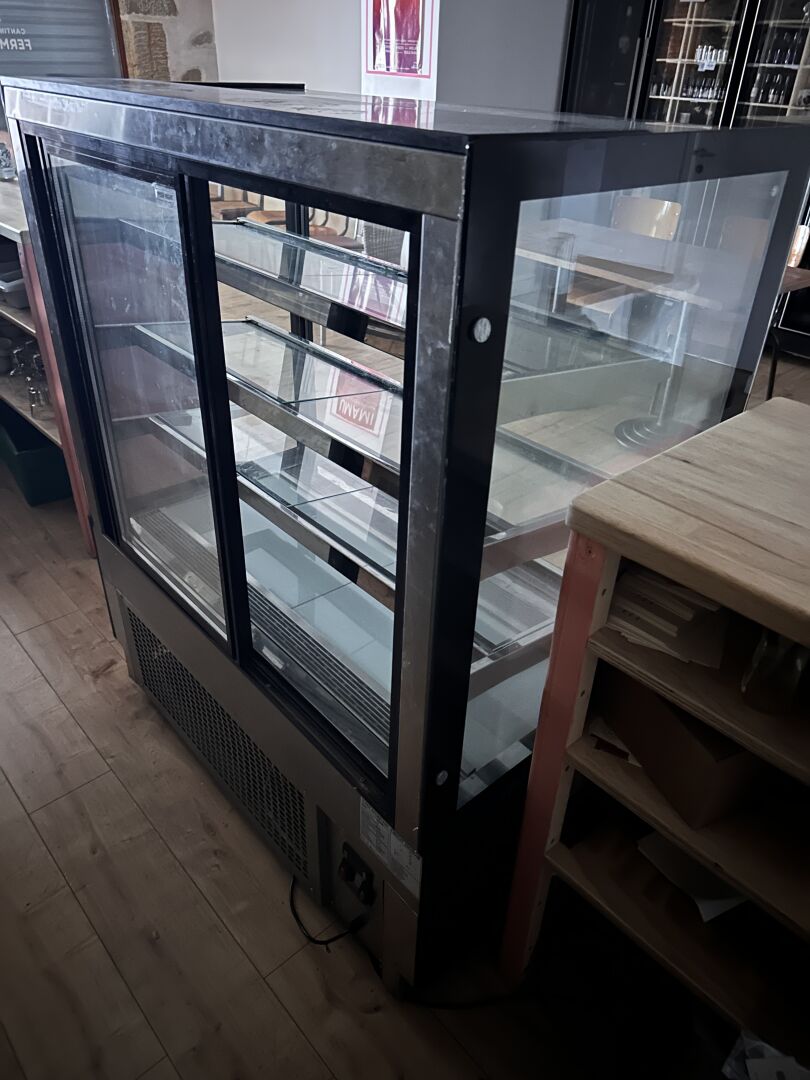1 vitrine vitrée toute face type pâtisserie en inox modèle CAKE Showcase Eden 540L, 3 plateaux, moteur logé, 140x116x64 cm