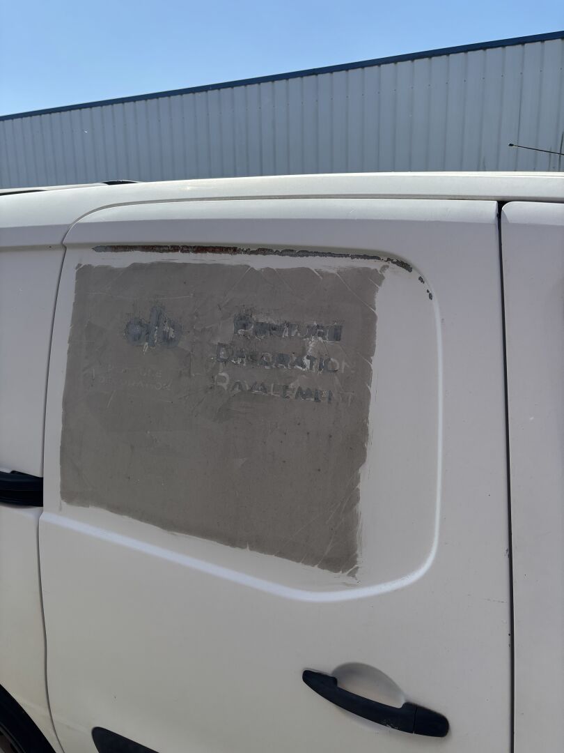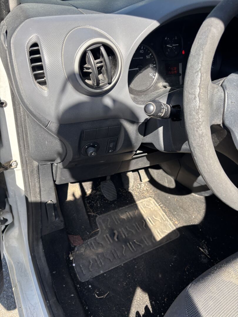 Commentaires : Blanc, boite manuelle 5 vitesses, sièges tissu noir (tachés), rétroviseurs et vitres électriques, sérigraphié, frottements
