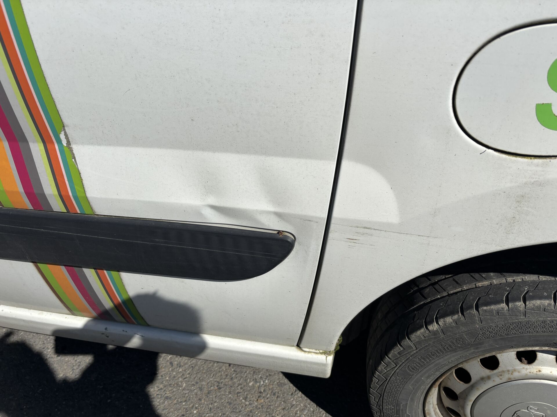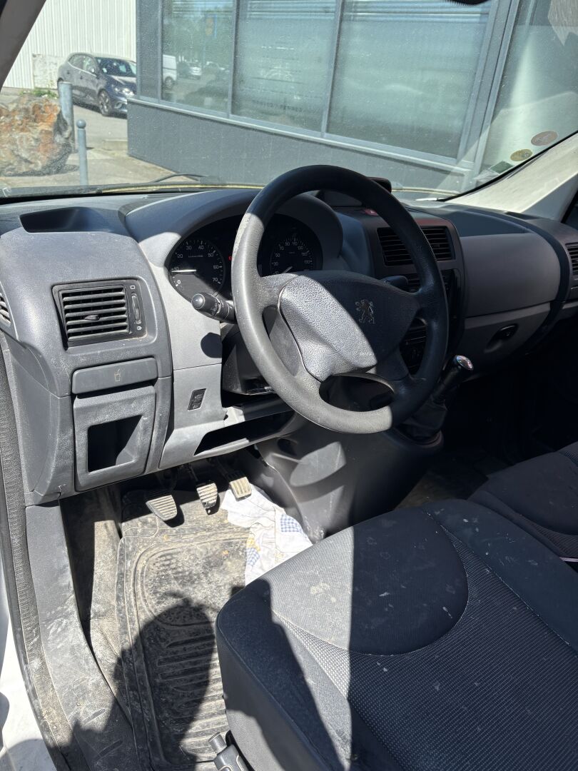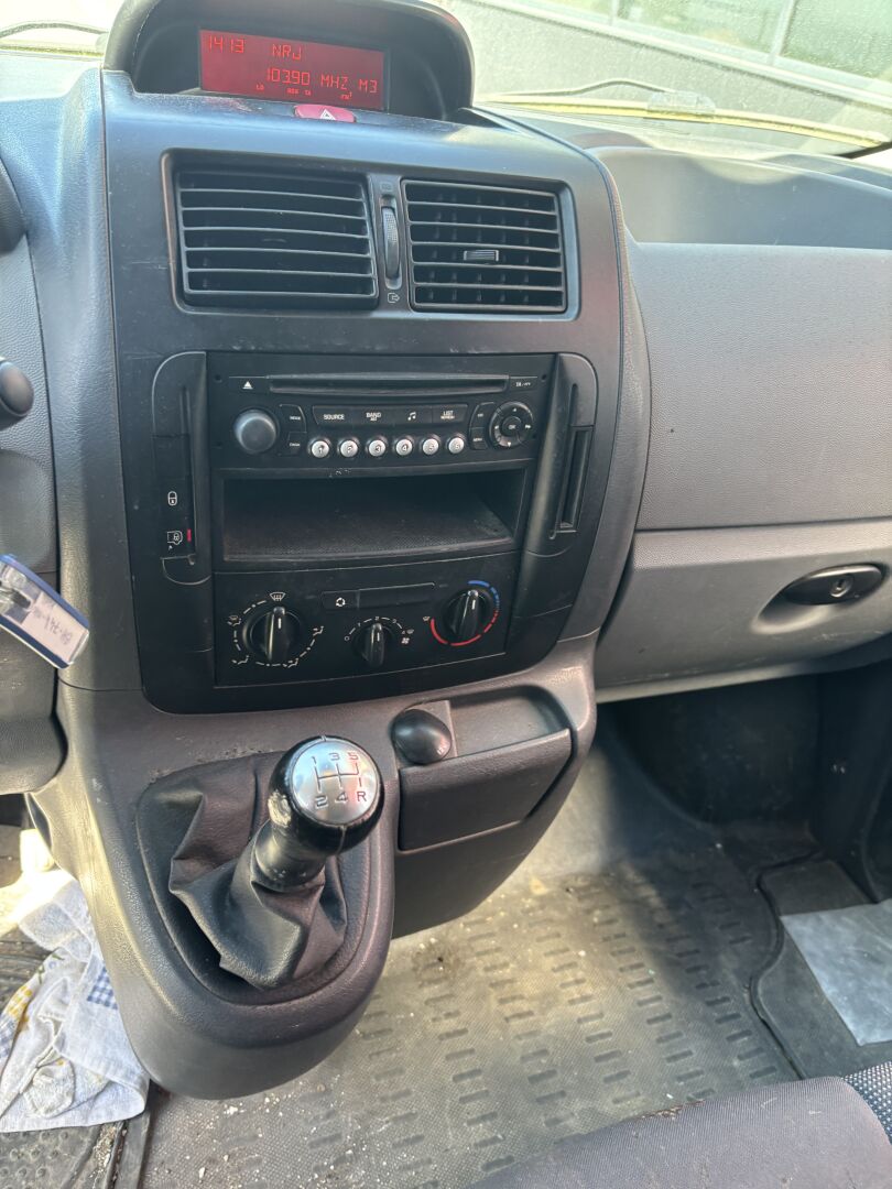 Commentaires : Blanc, sérigraphié, boite manuelle 5 vitesses, vitres et rétroviseurs électriques, sièges tissu noir (déchirés, tachés), porte latérale, frottements, enfoncements