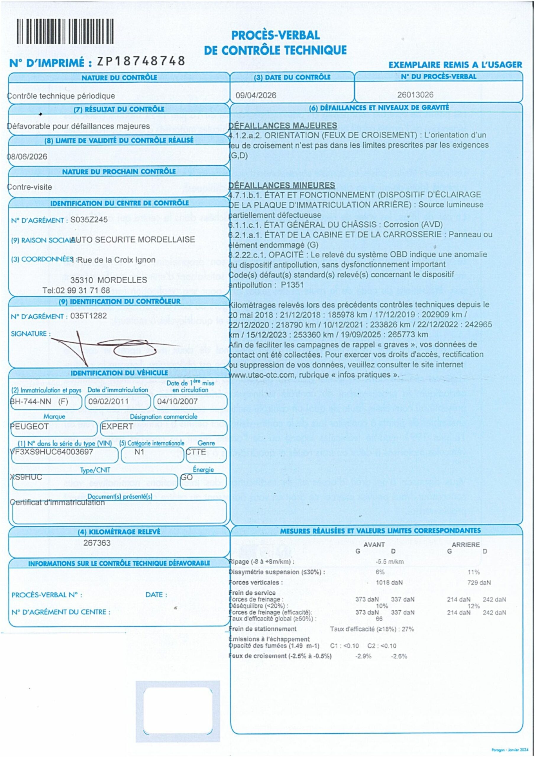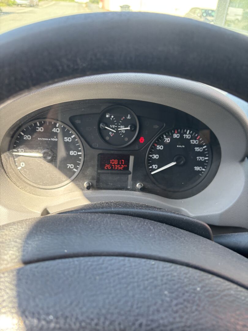 BOITE MANUELLE 5 VITESSES VITRES ET RETRO ELECTRIQUES SIEGES TISSU NOIR (DECHIRE, TACHE) PORTE LATERALE SERIGRAPHIE FROTTEMENTS, ENFONCEMENTS DEFAILLANCES MAJEURES : MAUVAISE ORIENTATION DES FEUX DE CROISEMENT G D DEFAILLANCES MINEURES : ECLAIRAGE DE LA PLAQUE AR DEFECTUEUX ETAT DU CHASSIS : CORROSION PANNEAU OU ELEMENT DE LA CABINE ENDOMMAGE G OBD INDIQUE UNE ANOMALIE DU SYSTEME ANTIPOLLUTION