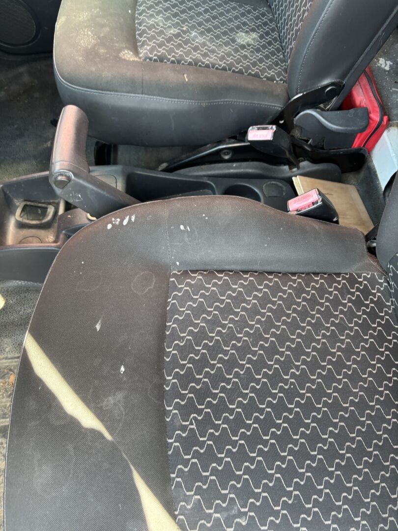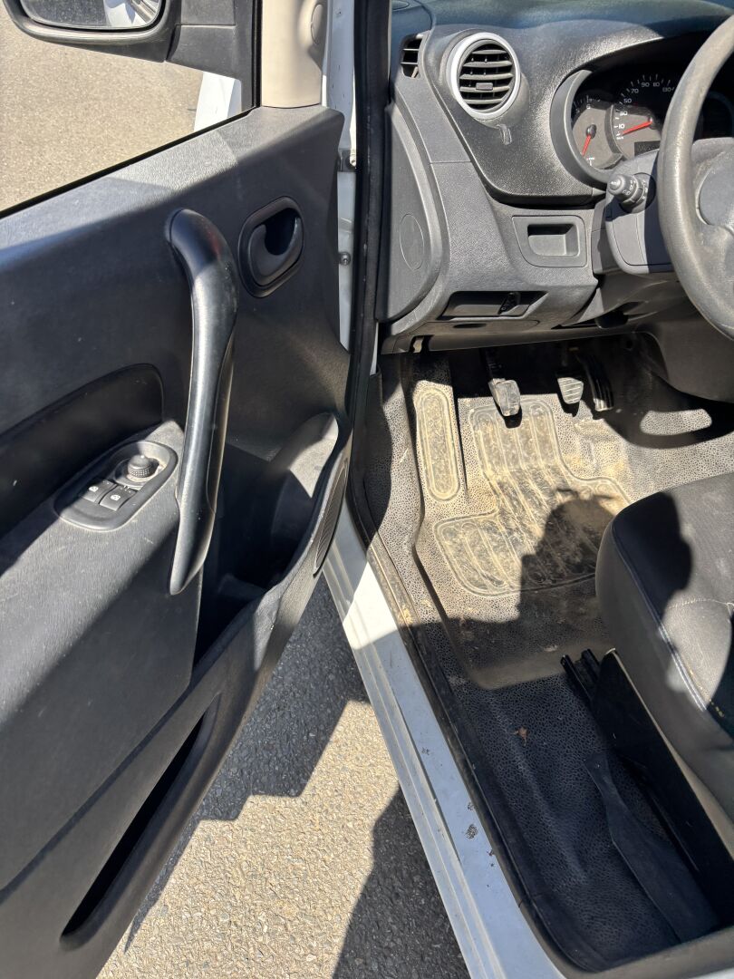 Commentaires : Blanc, boite manuelle 5 vitesses, vitres et rétroviseurs électriques, barre de toit, siège tissu noir (tachés), frottements