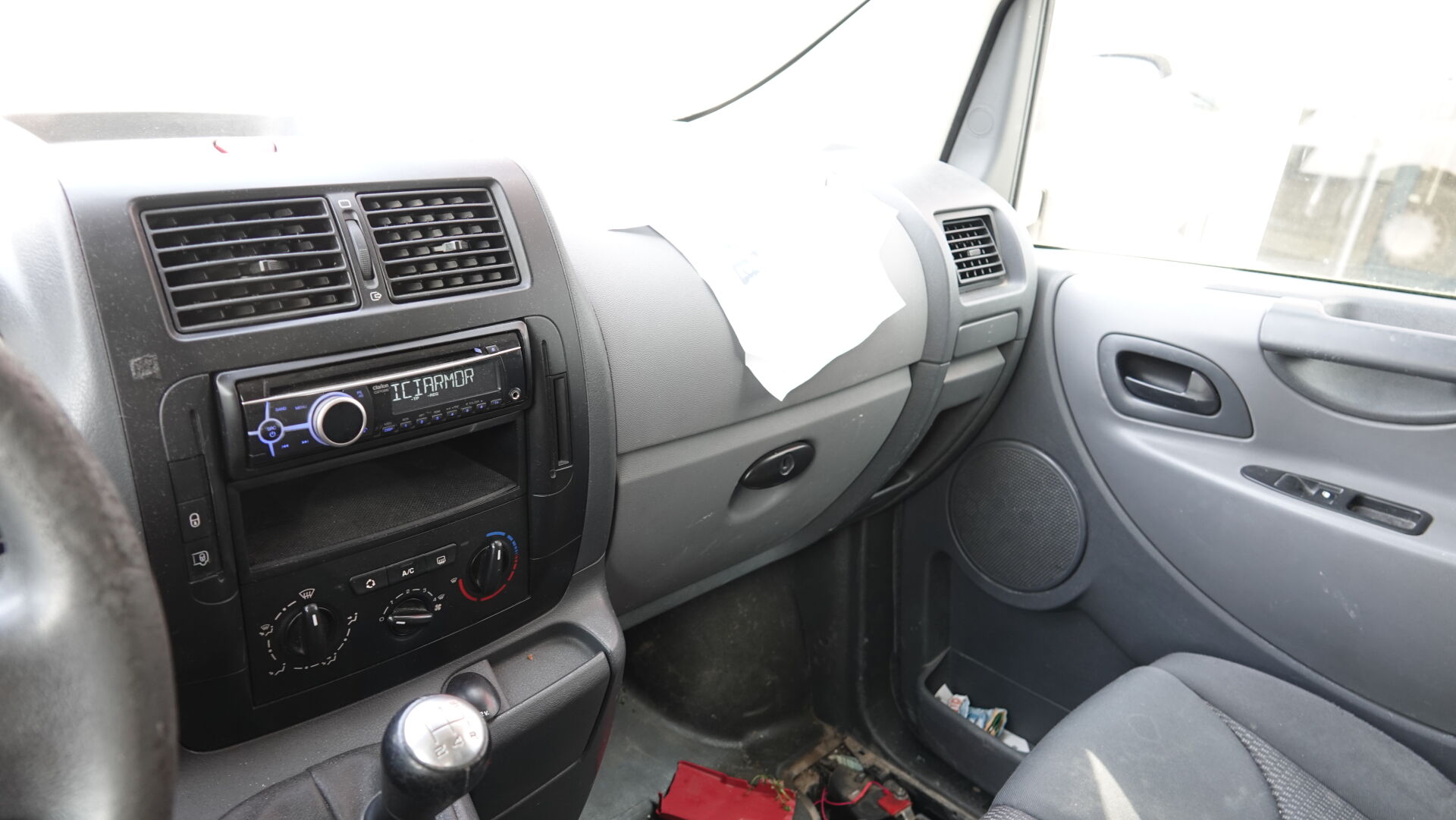 Commentaires : Blanc, sérigraphié, boite manuelle 5 vitesses, climatisation, vitres et rétroviseurs électriques, siège tissu noir, frottements
