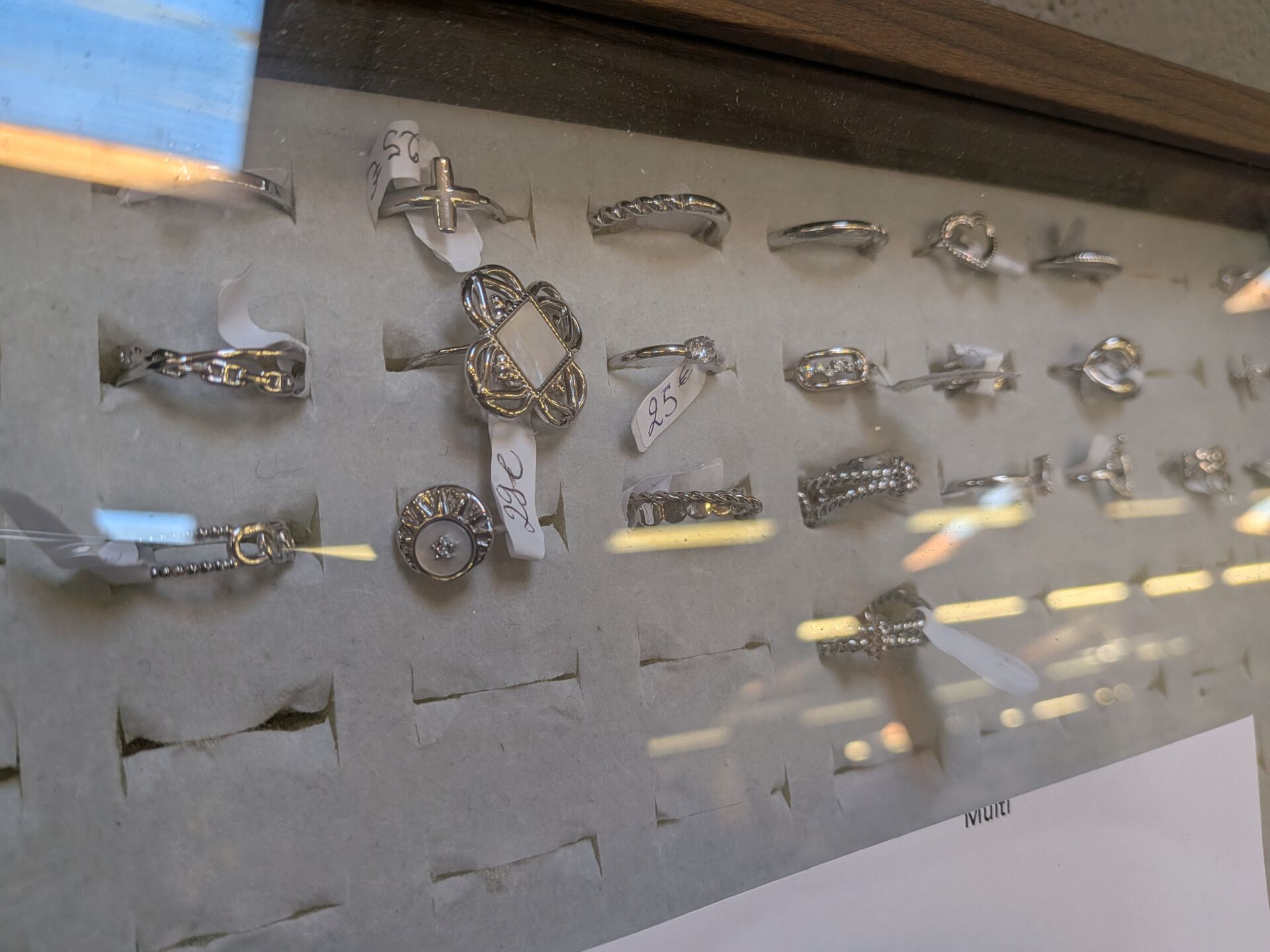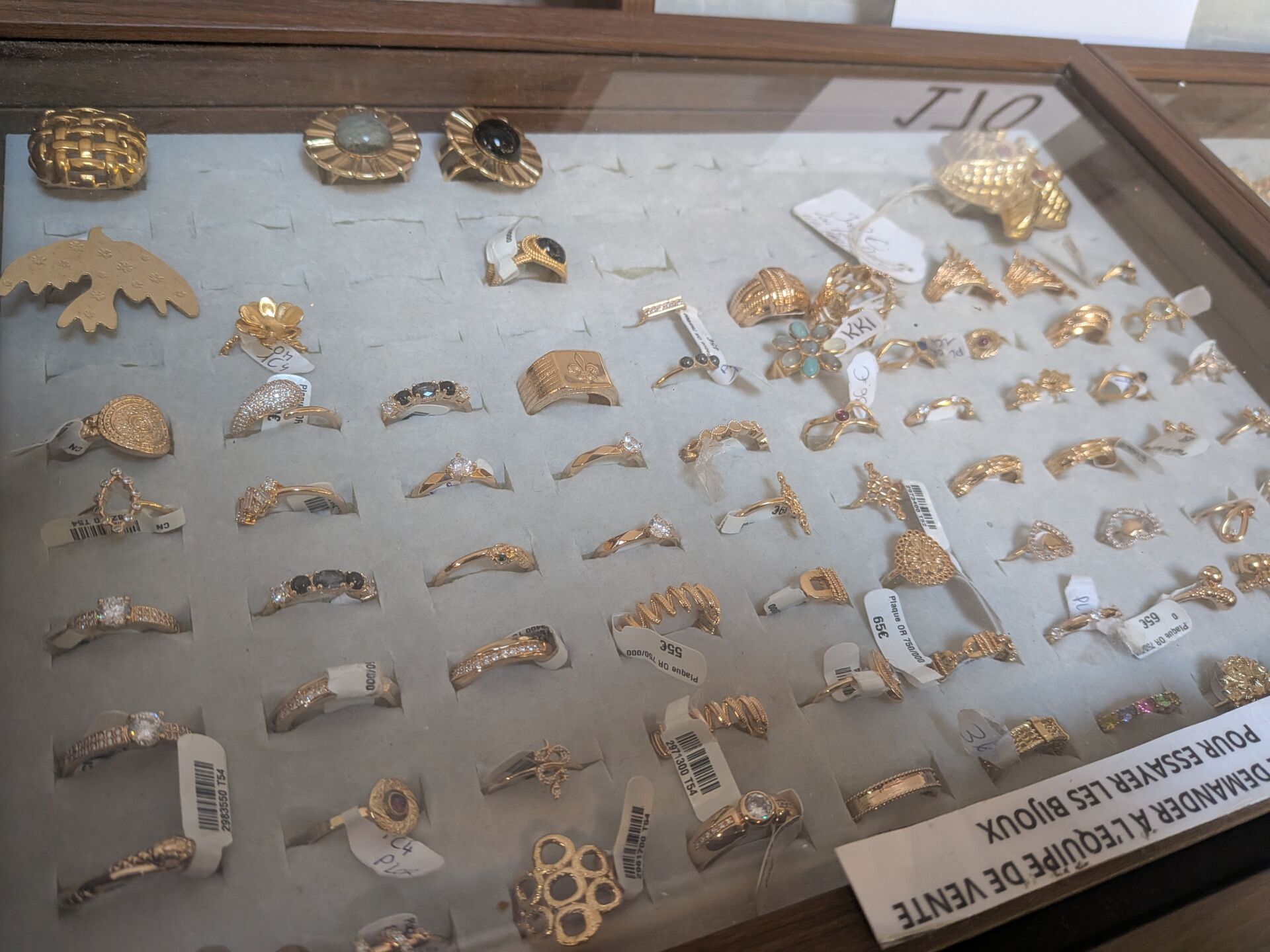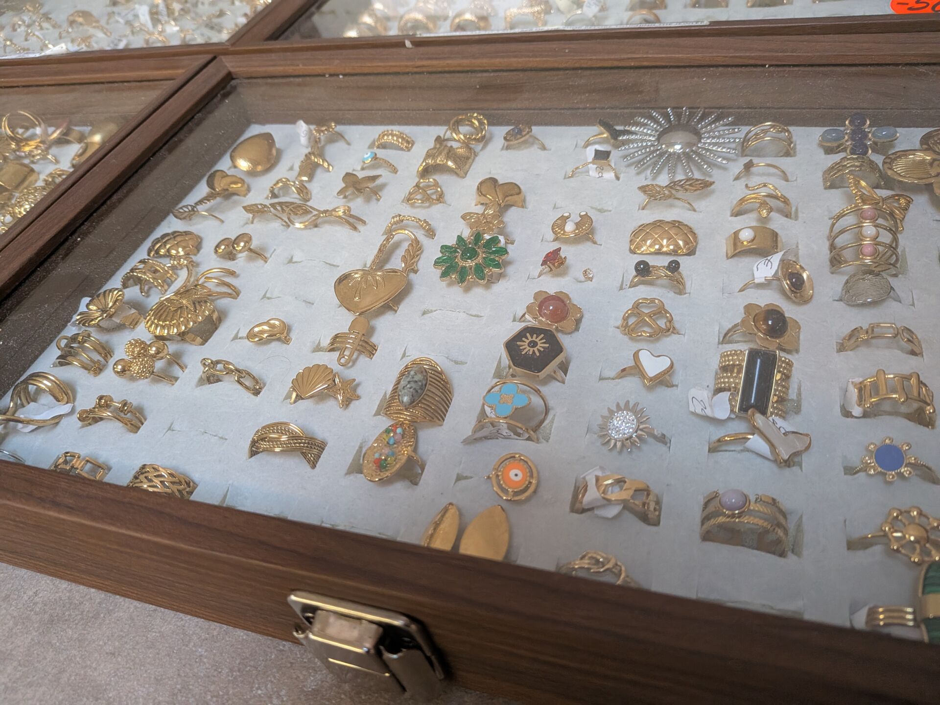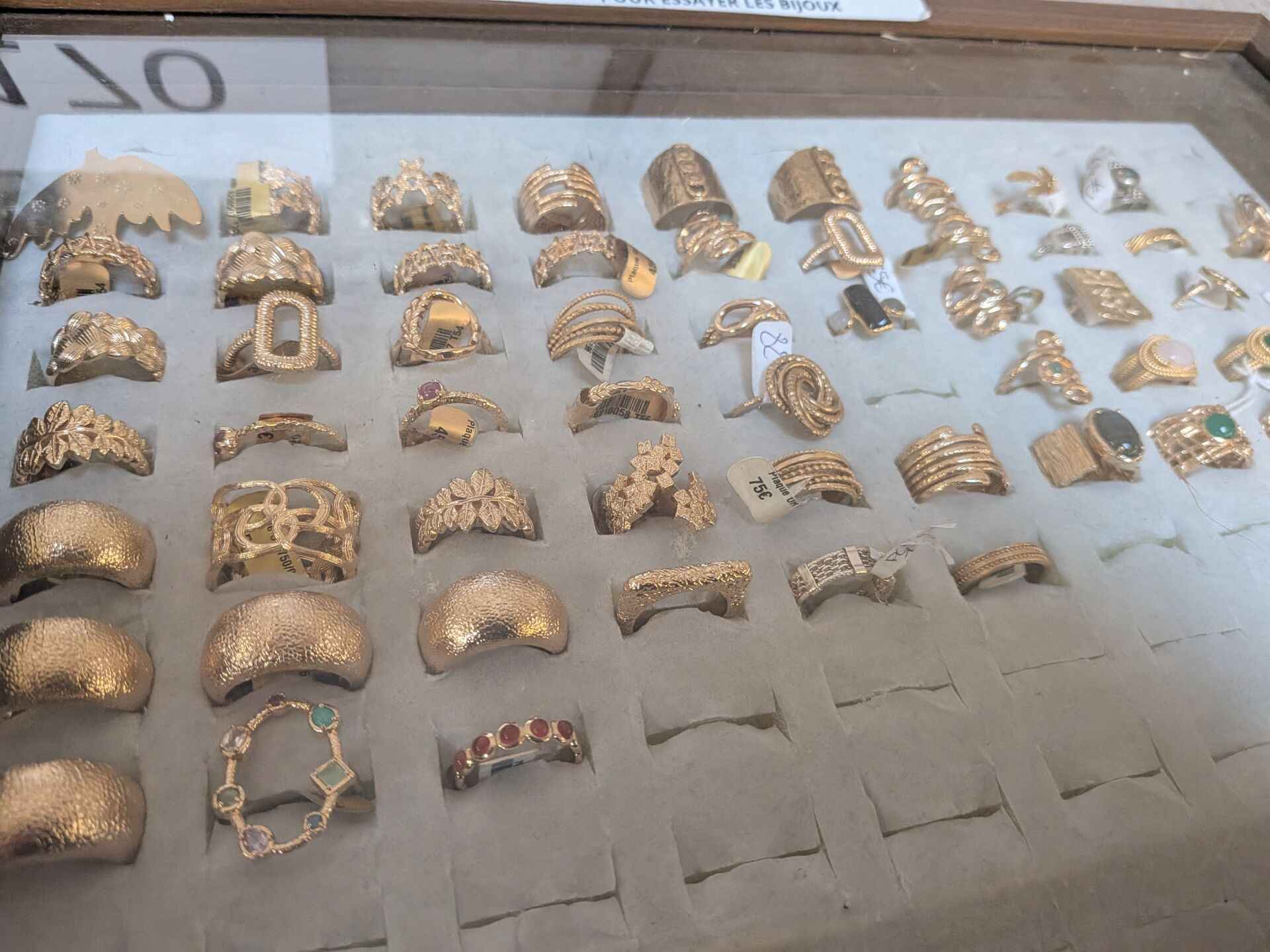 dans 5 coffrets 1 lot d'environ 300 bagues fantaisie , certaines plaqué or ou argent
