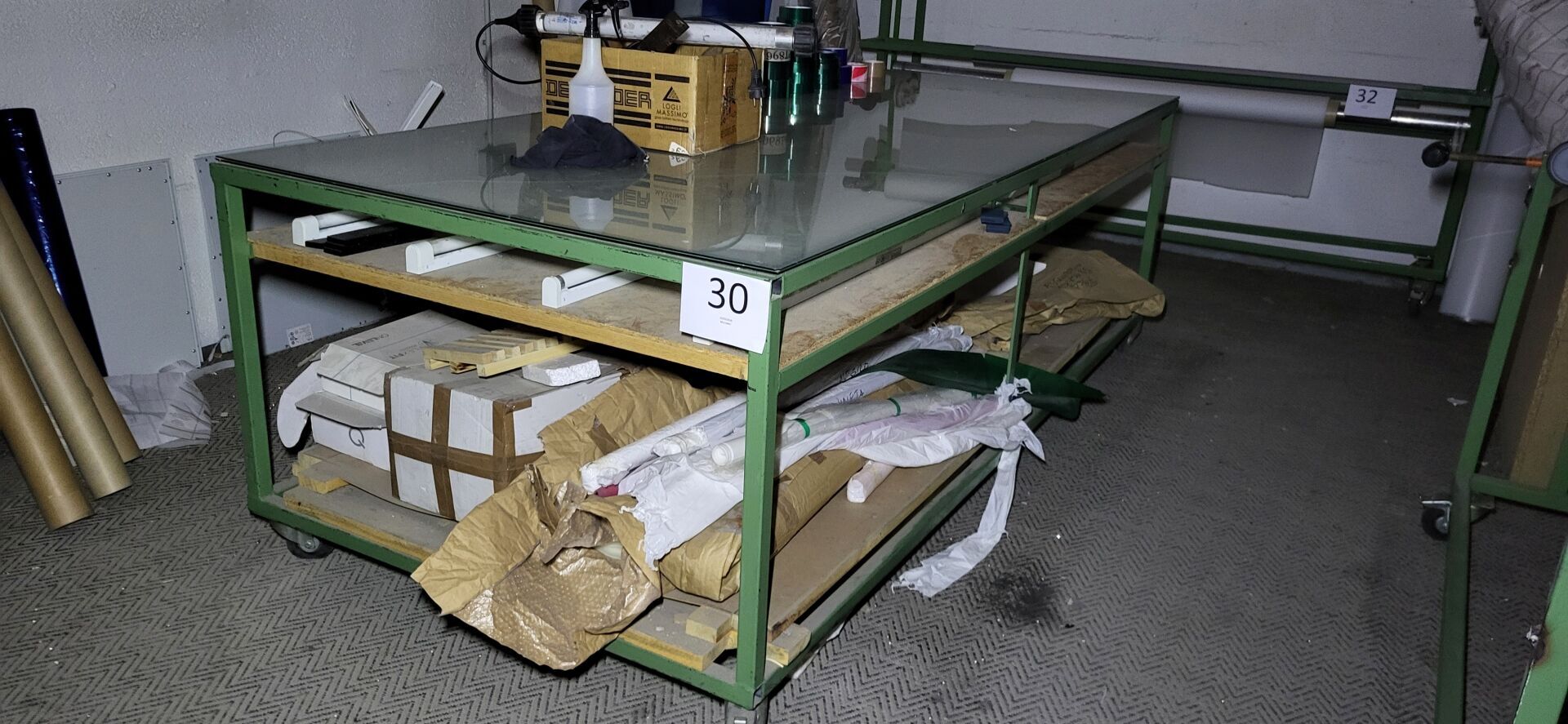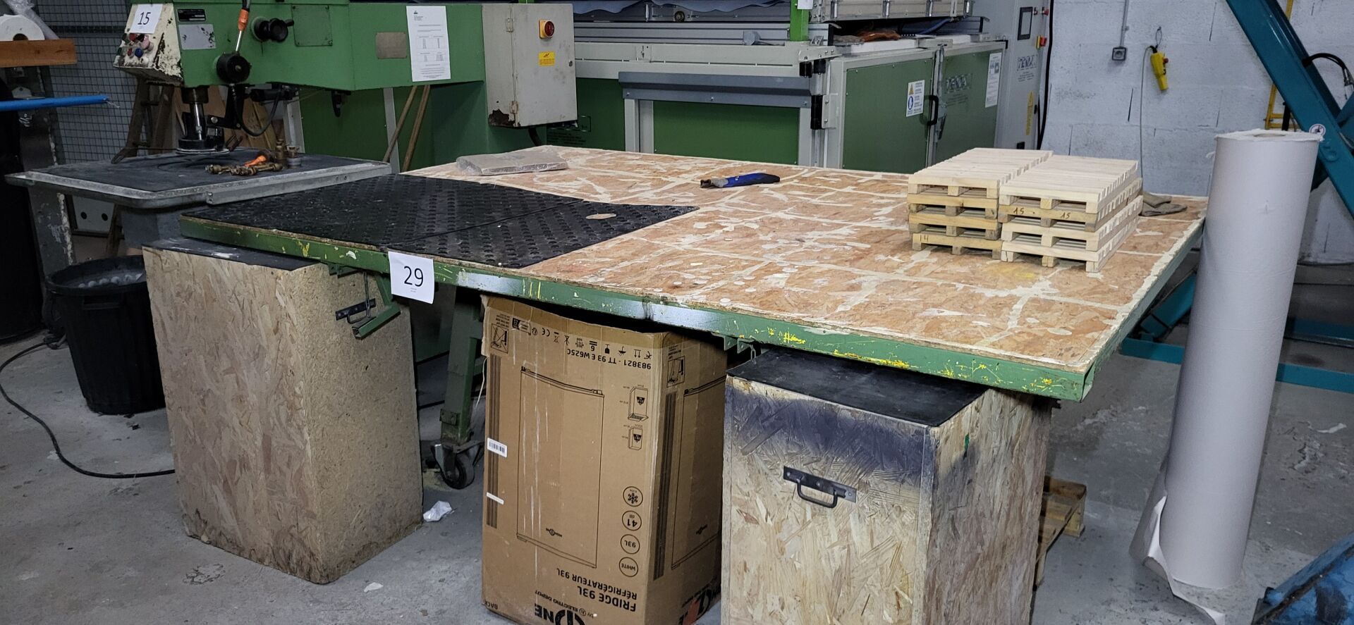 Vendu sur désignation le 02 03 2026 à 10h 24 rue du marché commun à Nantes, Enlèvement les 17/18/19 mars 2026 de 9h à 17h à CARQUEFOU - frais de mise à disposition 20 € TTC Lot d'environ 6 d'élingues Table de travail mobile en acier, plateau OSB, dimensions 245 x 160 cm Table de travail en acier mobile, plateau verre félé dimensions : 255 x 120 cm Chariot dérouleur pour rouleau de 1600mm Chariot dérouleur pour rouleau de 2200mm à 2 niveaux