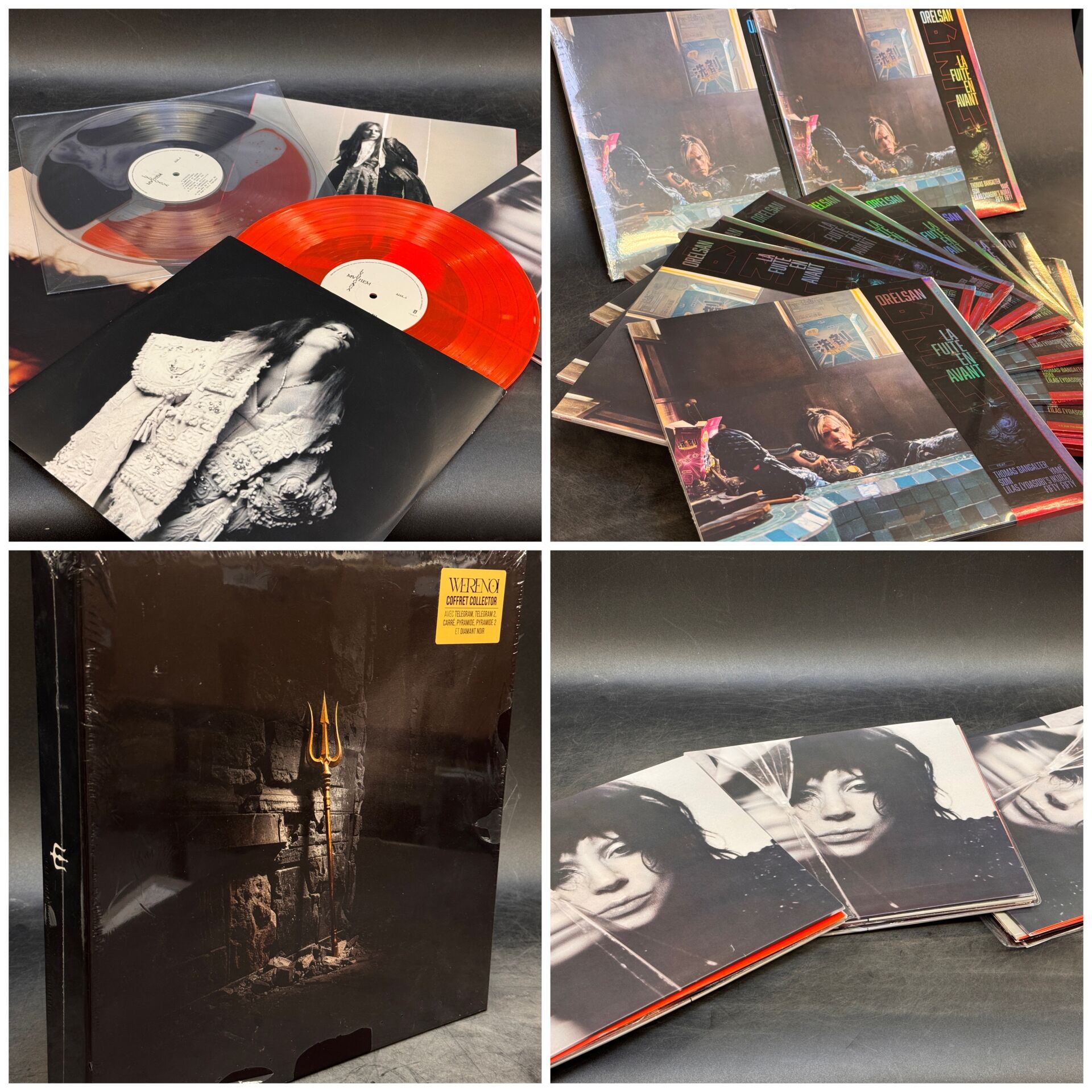 18 VINYLES & COFFRET : LADY GAGA MAYHEM / ORELSAN LA FUITE EN AVANT / WERENOI COFFRET COLLECTOR (dont vinyles sans scellé, traces d'usage) (expédition sur devis)