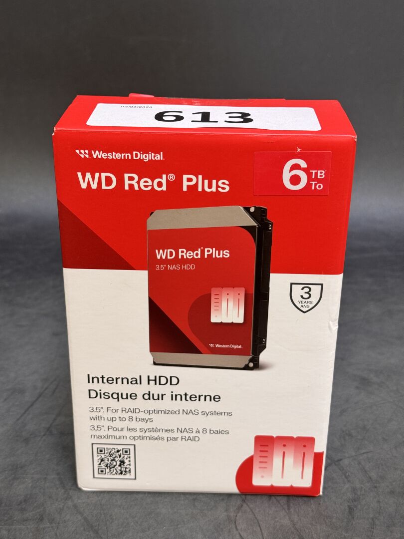 DISQUE WESTERN DIGITAL WD RED PLUS 6TO EXPEDITION POSSIBLE (ce lot chez vous en France métropolitaine pour 26,50€) Lot issu de colis non réclamés : état de fonctionnement non garanti.
