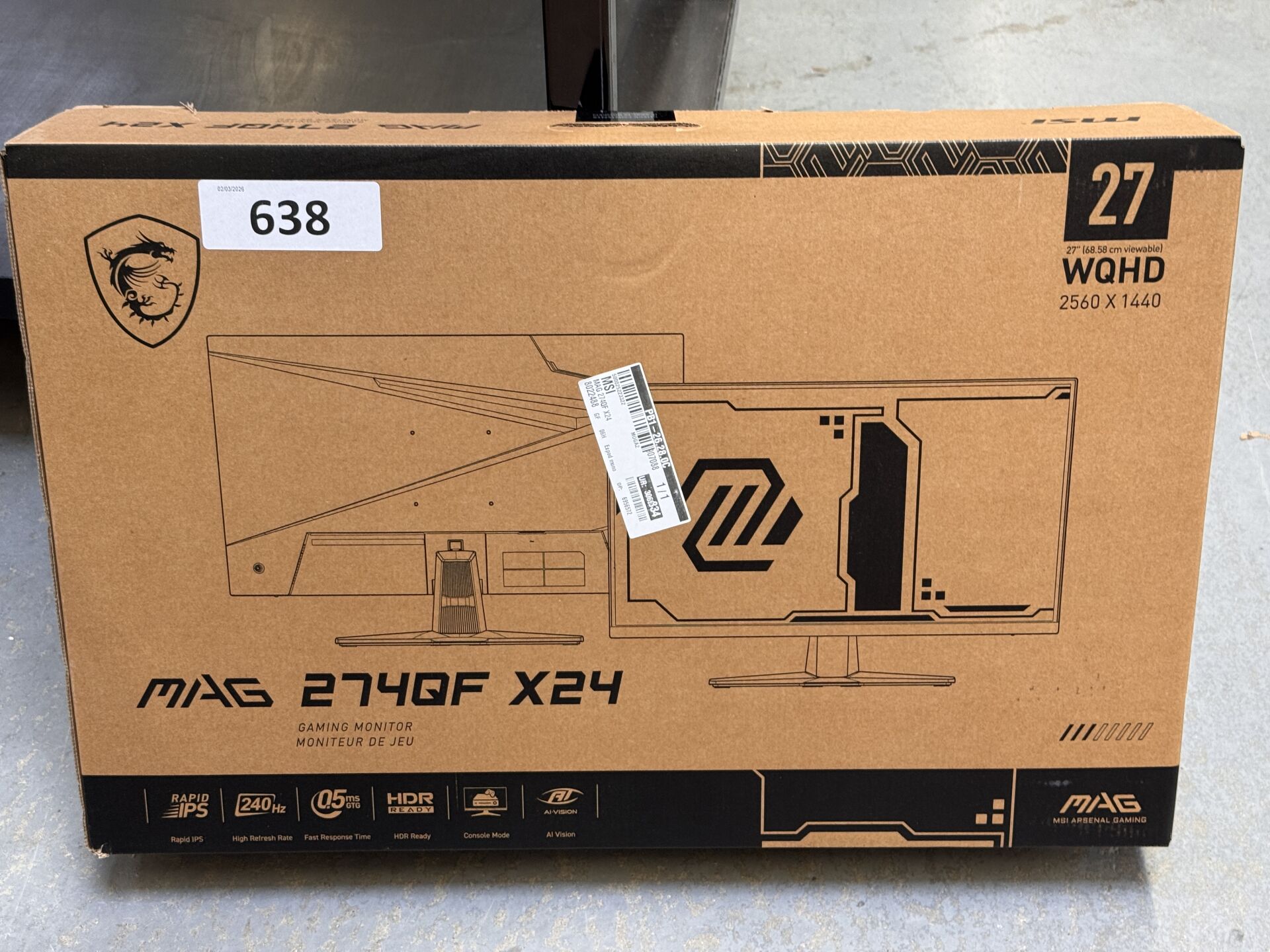MONITEUR MSI 27" MAG 274QF X24 4711377281621 (avec scellés) (expédition sur devis) Lot issu de colis non réclamés : état de fonctionnement non garanti. (la première image est une image d'illustration)