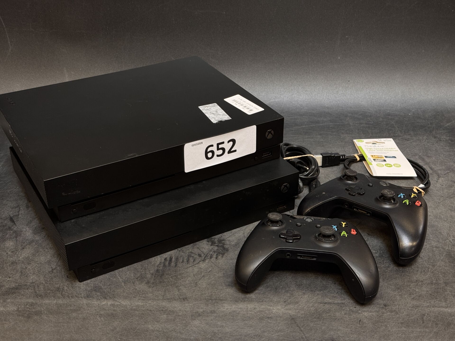 2 CONSOLES MICROSOFT XBOX ONE X + 2 MANETTES EXPEDITION POSSIBLE (ce lot chez vous en France métropolitaine pour 39€) (sans emballage, traces d'usage, vendu en l'état)
