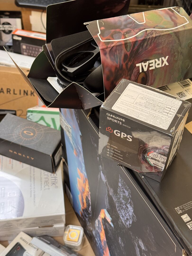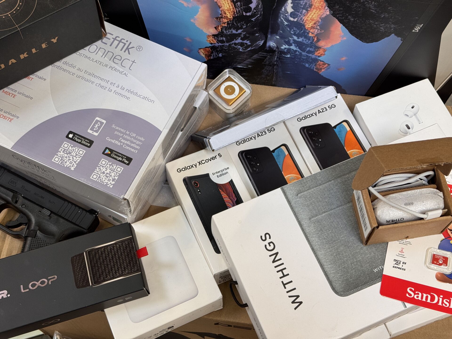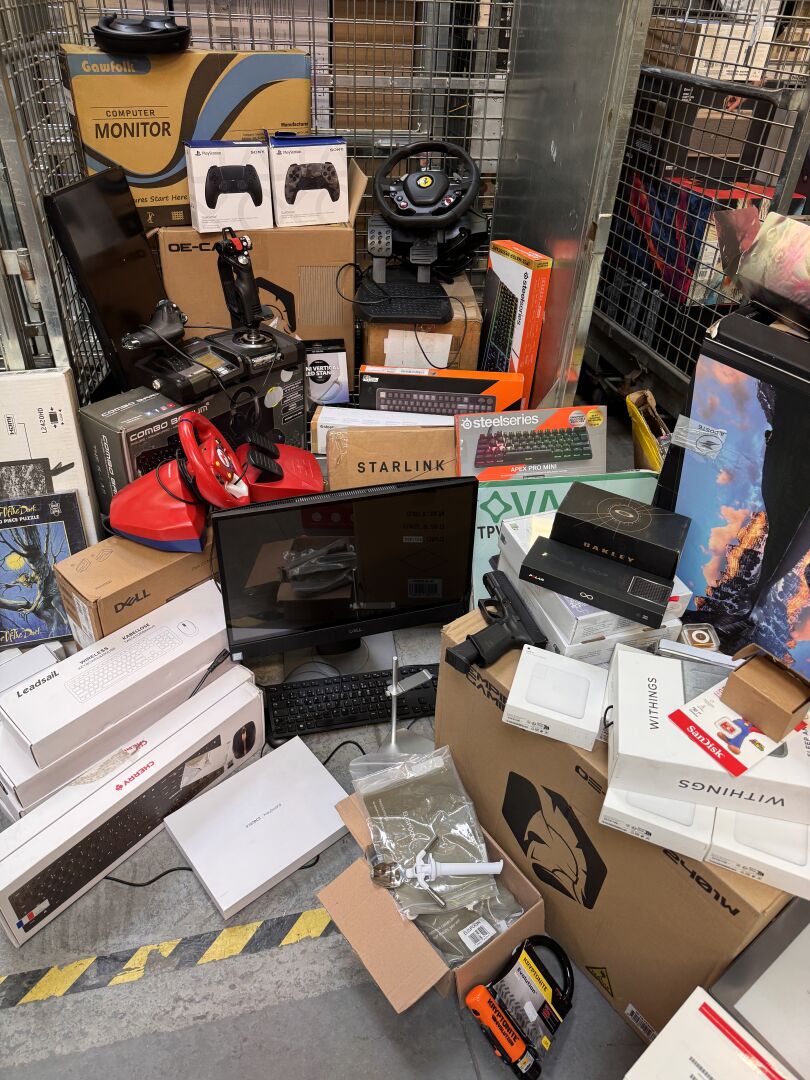 FORT ENSEMBLE DE MATERIEL INFORMATIQUE, MULTIMEDIA & LOISIRS DONT MONITEURS, MANETTES, ECRANS, CLAVIERS, VOLANT, JOYSTICK, CASQUE (expédition sur devis) (dont produits avec traces d'usage) Lot issu de colis non réclamés : état de fonctionnement non garanti (dont produits avec traces d'usage, retour sav, avarie de transport, seconde main, en l'état)