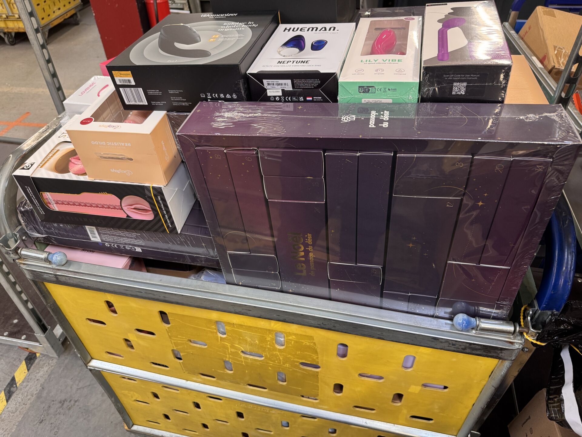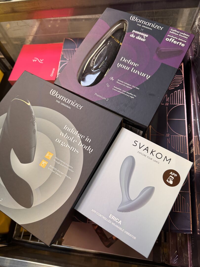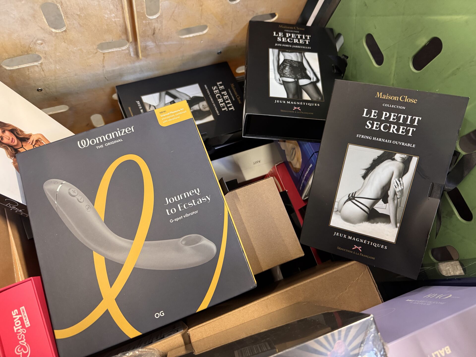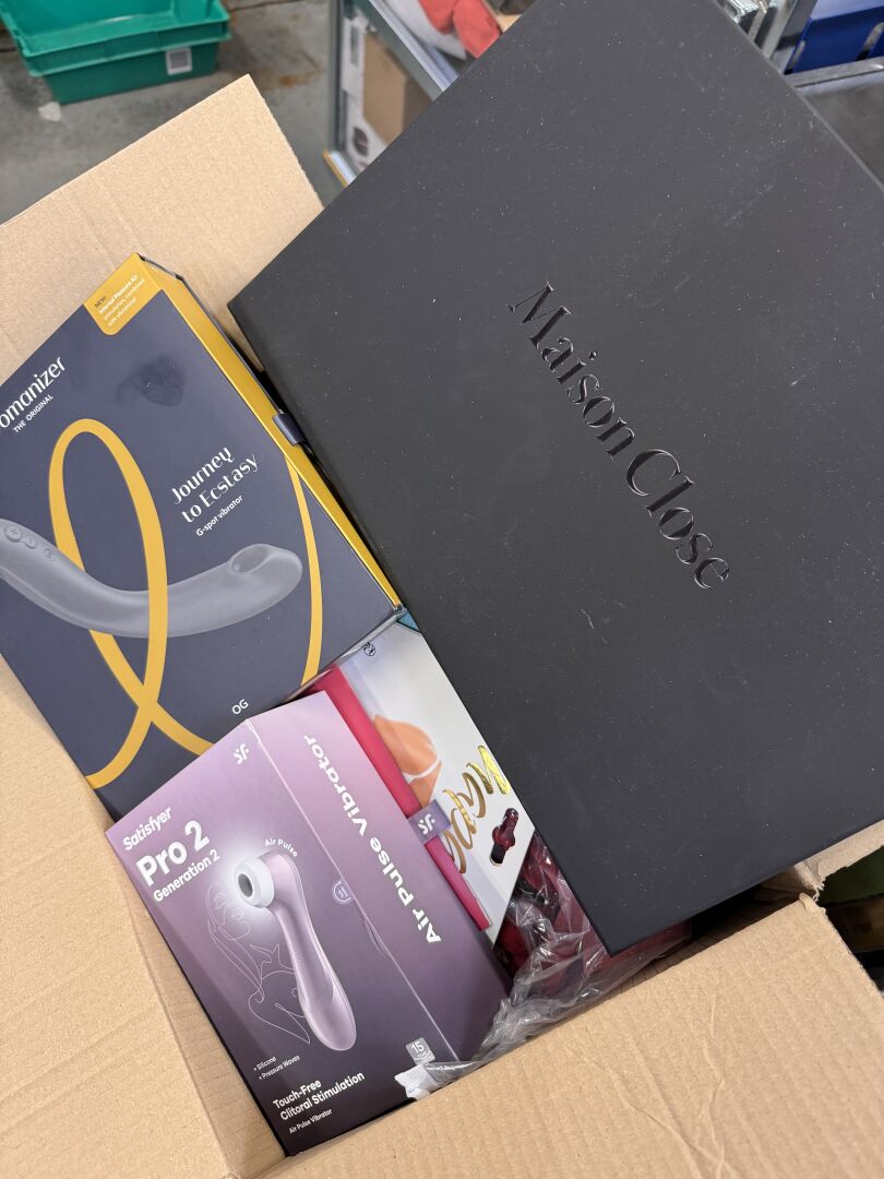 IMPORTANT LOT D'ACCESSOIRES ET JEUX POUR ADULTES DONT SATISFYER, MAISON CLOSE, WOMANIZER (expédition sur devis) Lot issu de colis non réclamés : état de fonctionnement non garanti.