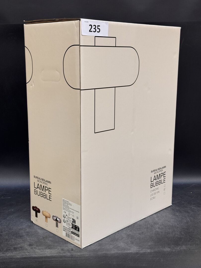 LAMPE BUBBLE LIE DE VIN BUREAU BENJAMIN X MONOPRIX EXPEDITION POSSIBLE (ce lot chez vous en France métropolitaine pour 39,49€) Lot issu de colis non réclamés : état de fonctionnement non garanti. (la première image est une image d'illustration)