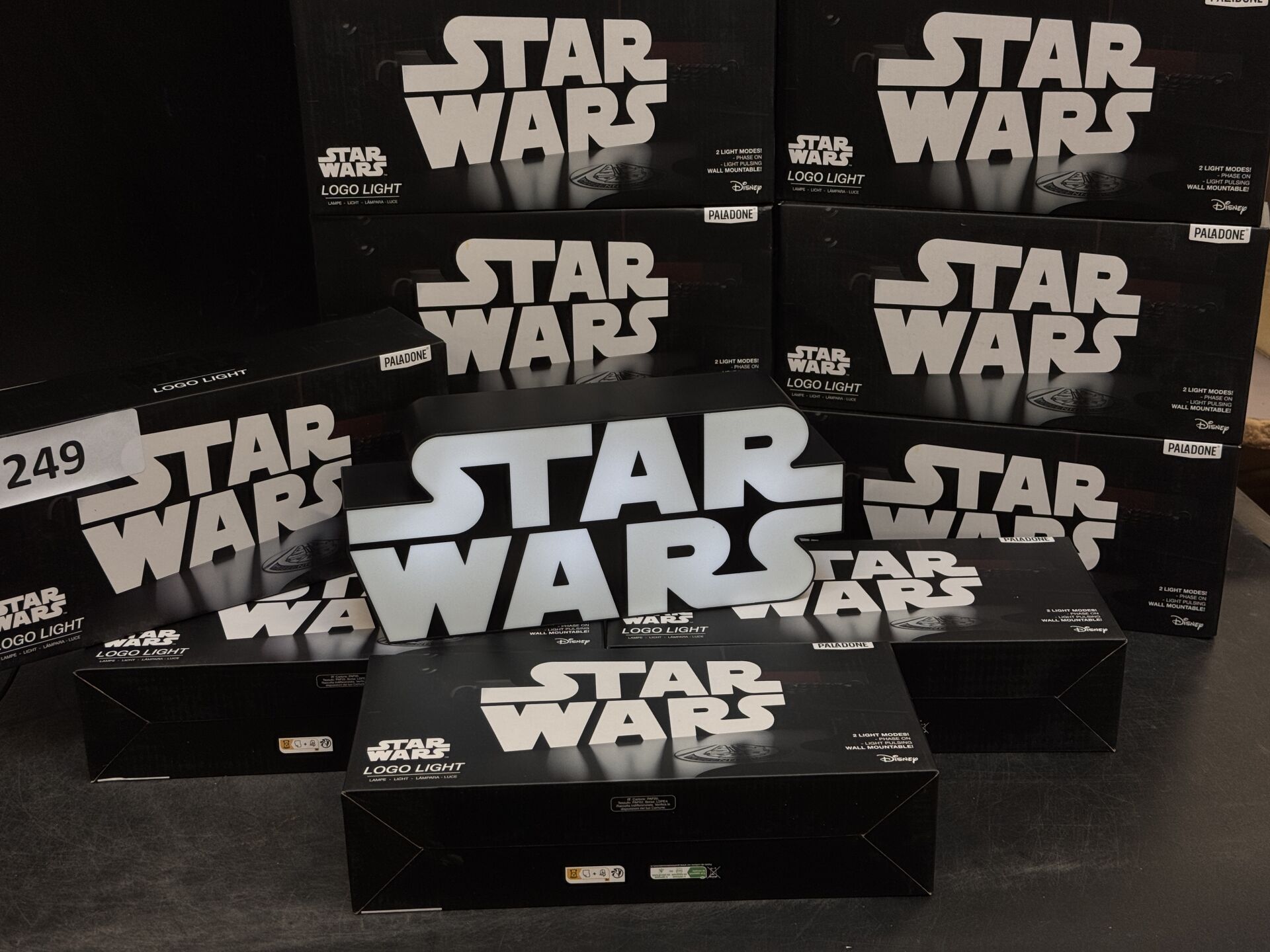 LOT DE 10 LOGOS LUMINEUX STAR WARS EXPEDITION POSSIBLE (ce lot chez vous en France métropolitaine pour 30,64€) Lot issu de colis non réclamés : état de fonctionnement non garanti,en l'état)
