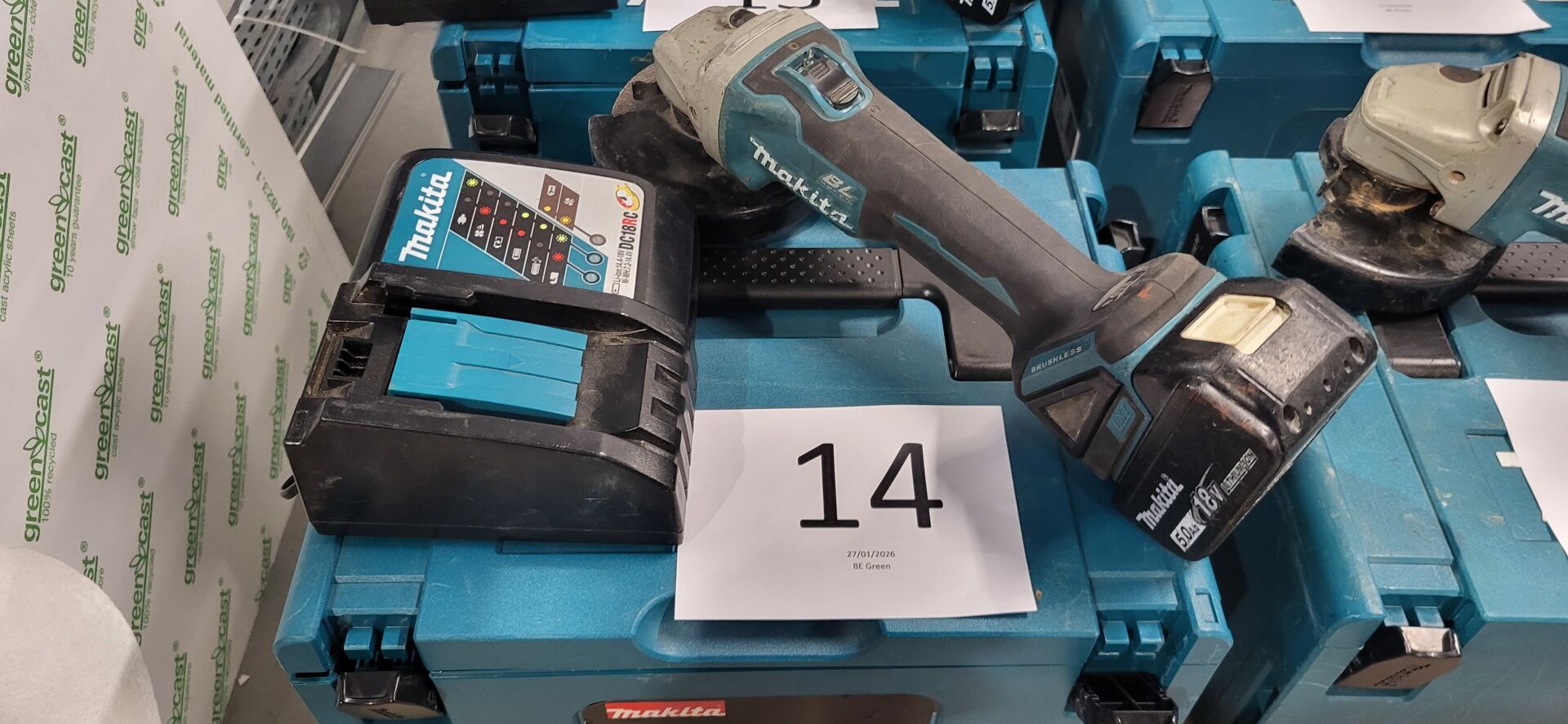 1 meuleuse d'angle autonome MAKITA DGA504 diam 125 mm, 1 batterie 18V, 1 chargeur en coffret