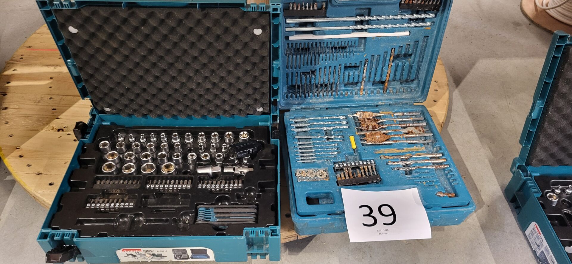 2 coffrets MAKITA de clés, embouts, douilles et forets, tarauds (incomplets)