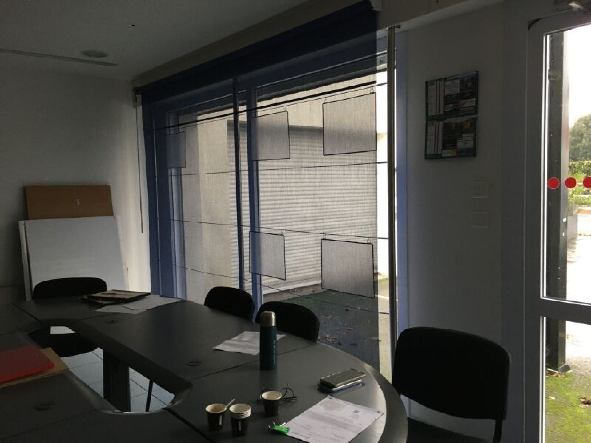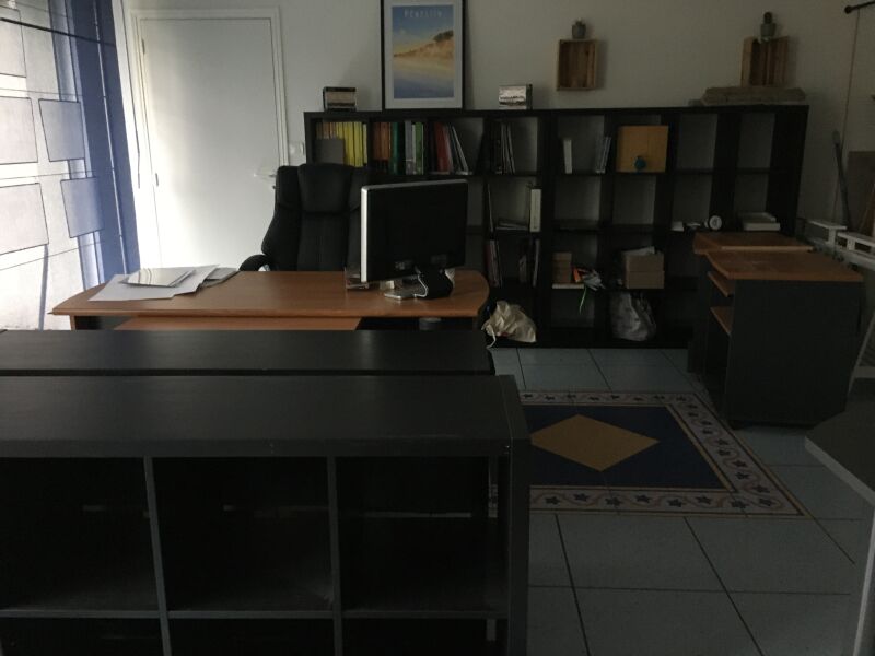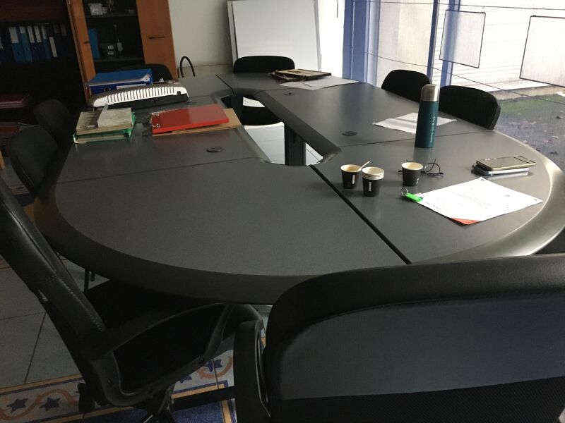 1 ensemble de mobilier de bureau d'agence habillage façon bois avec éléments gris comprenant : - 2 étagères multi-compartiments habillage noir - 16 cases chacune + 3 à 8 cases - 2 tréteaux bois, habillage blanc réglables en hauteur - 2 dessertes - 1 bureau + éléments de bureau démontés - 2 armoires basses - portes pliantes + 1 haute assortie - 1 grand bureau avec plateau de convivialité - - 1 rangement porte rideau - table réunion ovalisée composée de 6 modules, habillage gris - - 1 présentoir à échantillons PORCENALOSA - 1 caisson de bureau habillage façon bois - - 1 fauteuil tournant et roulant, tissu noir et tresse - 2 fauteuils tournants et roulants, cuir noir - - 8 chaises visiteurs, assise et dossier, tissu noir, + 1 chaise pliante 1 relieuse manuelle, 1 cafetière électrique 1 plastifieuse FELLOWES SATURN 01/A3 1 échelle télescopique CLASSOCO 1 aspirateur balai 1 pendule murale 1 ensemble de porte affiches de vitrine 1 mappemonde 1 lot d'informatique comprenant : - 1 ordinateur portable ASUS 46000 N° 027115 - K 5015 - ARS5895 - 1 écran 24p FUJITSU G4 C1 - N°P025440 - 1 clavier - 1 écran 22p HP W2216V T861LC74 - 1 ordinateur portable ASUS AW 785, ancienne génération H.S. Vendu sur désignation le 30 03 2026 à 10h 24 rue du marché commun 44300 Nantes, visible le 27 03 2026 sur RDV (MM) - Enlèvement avec chèque de caution de 2500 €