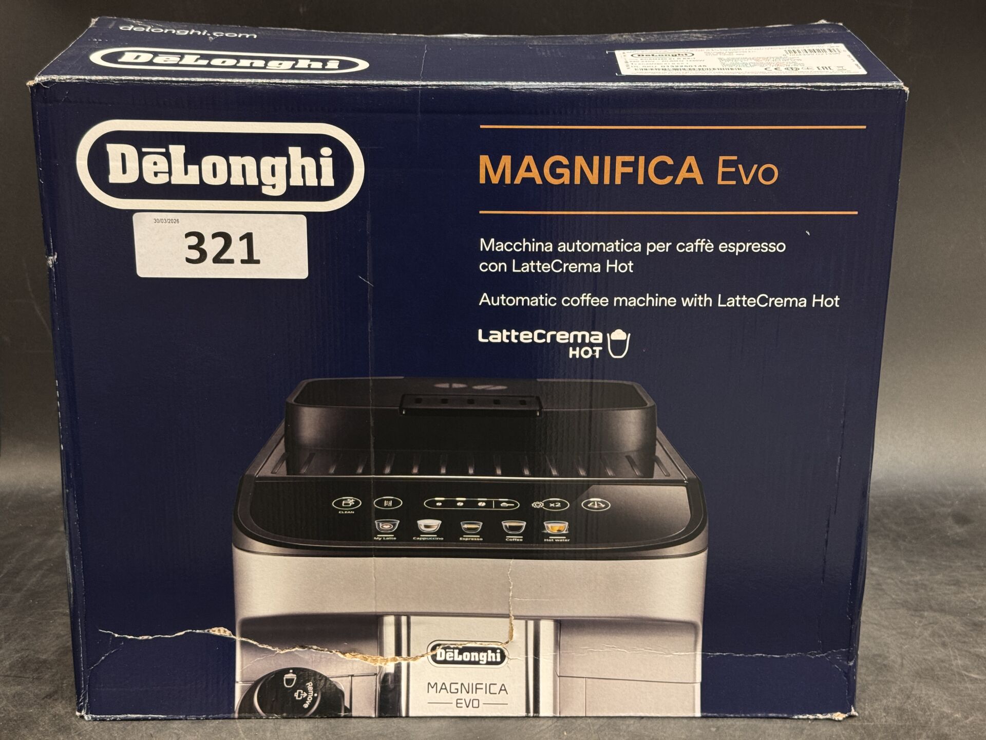 MACHINE A CAFE DELONGHI MAGNIFICA EVO ECAM290.61.B 8004399021396 EXPEDITION POSSIBLE (ce lot chez vous en France métropolitaine pour 43€) Lot issu de colis non réclamés : état de fonctionnement non garanti. (emballage endommagé)