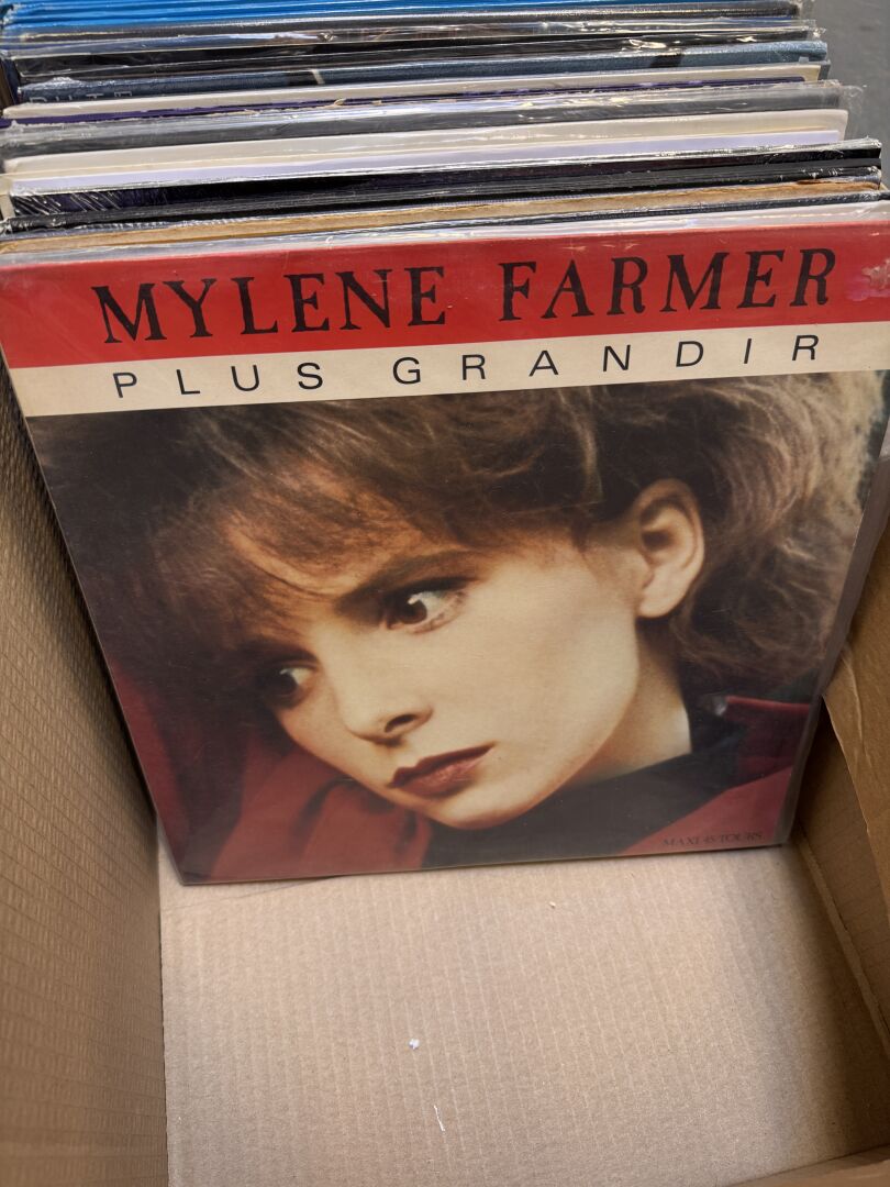 ENVIRON 50 VINYLES DIVERS DONT MYLENE FARMER, LANDMVARKS, HOOVERPHONIC, RAY BARRETTO, THE SUPREM LOVERS (dont vinyles sans scellé, traces d'usage) (expédition sur devis)