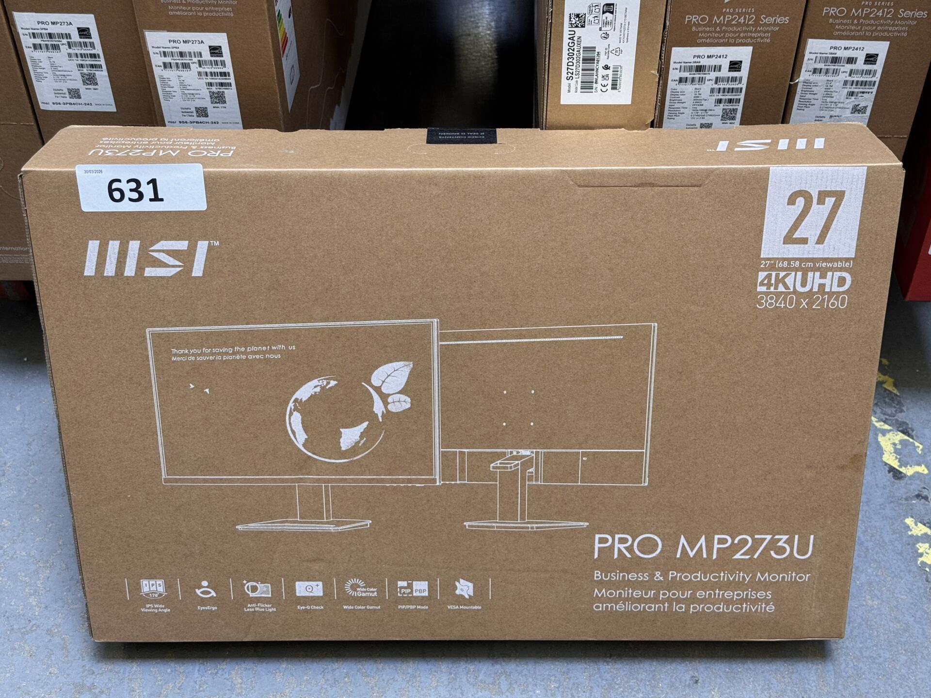 MONITEUR MSI 27" PRO MP273U 4711377192279 (avec scellés) (expédition sur devis) Lot issu de colis non réclamés : état de fonctionnement non garanti. (la première photo est une image d'illustration)
