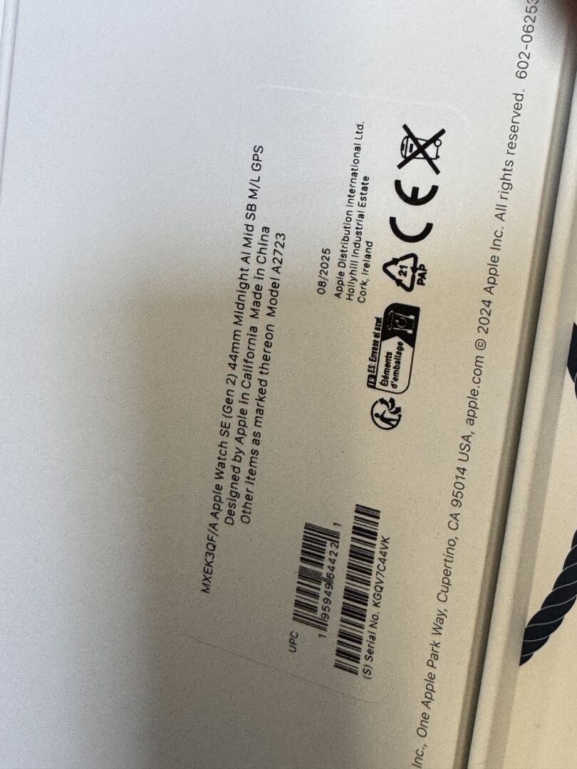 APPLE WATCH SE GEN 2 44MM MIDNIGHT A2723 SN KGQV7C44VK 195949644221 (état magasin) EXPEDITION POSSIBLE (ce lot chez vous en France métropolitaine pour 26,50€) Lot issu de colis non réclamés : état de fonctionnement non garanti