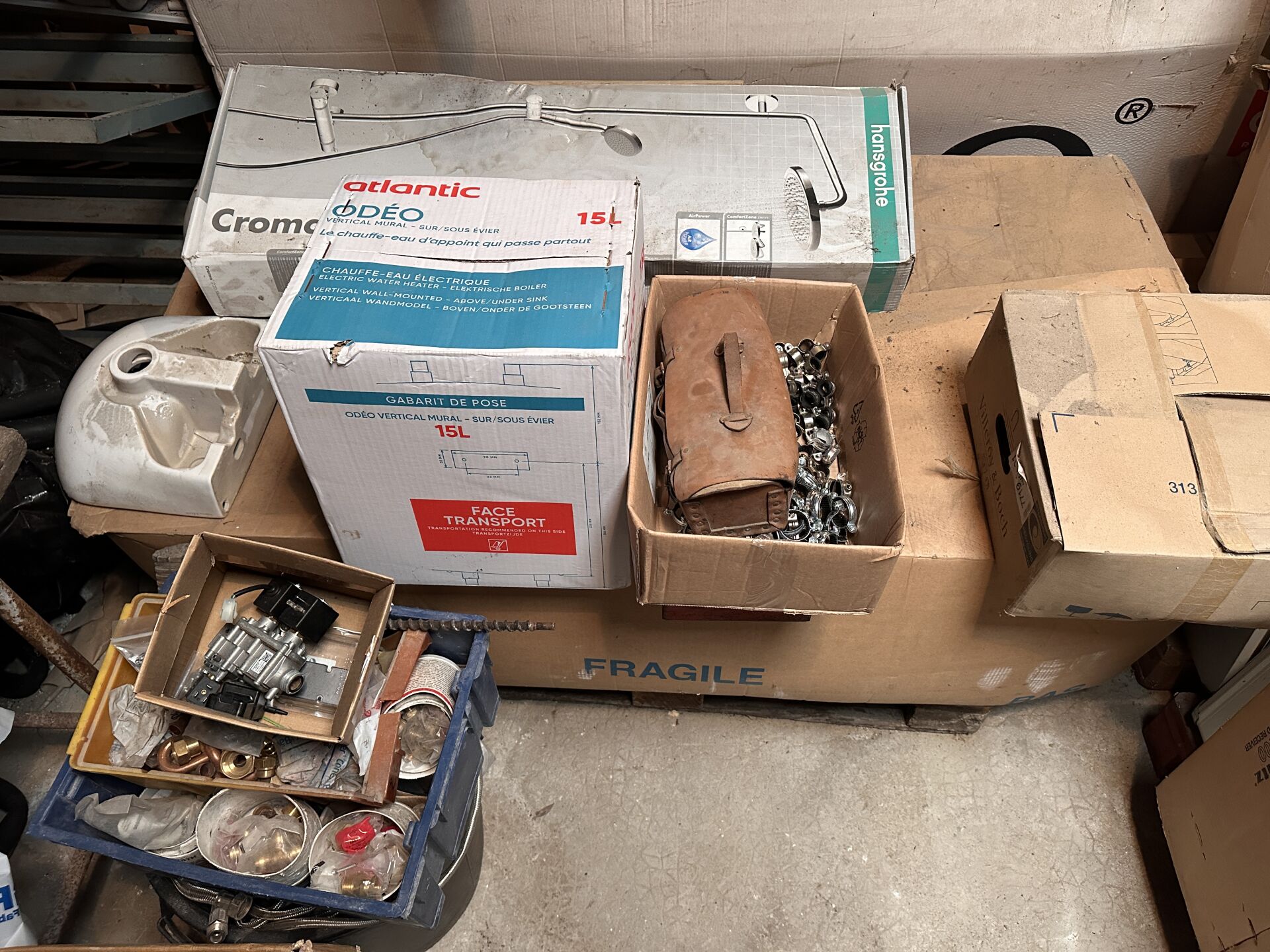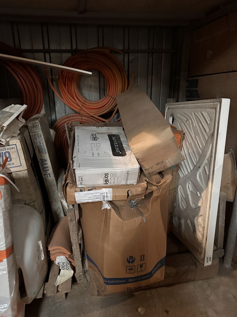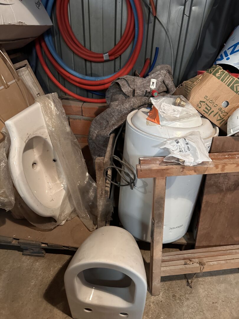 STOCK D'ACCESSOIRES PLOMBERIE, SANITAIRES ETC 1 baignoire balnéo PHARO, parois de douche, chaudière électrique FRISKUET, sanitaire, PER, gaines, plaques isolantes, receveurs de douche, éviers, lavabos, raccord zing, raccords PVC, raccords POUJOULAT, 1 chauffe-eau d'appoint ATLANTIC etc Vendu sur désignation le 30 03 26 à 10h, 24 rue du marché commun 44300 Nantes, visible le 30/03/26 à 8H30 SUR RDV à Nantes (quartier Lycée Les Bourdonnières) , enlèvement le 08 04 2026 A 9H , frais mise à dispo 20 € TTC