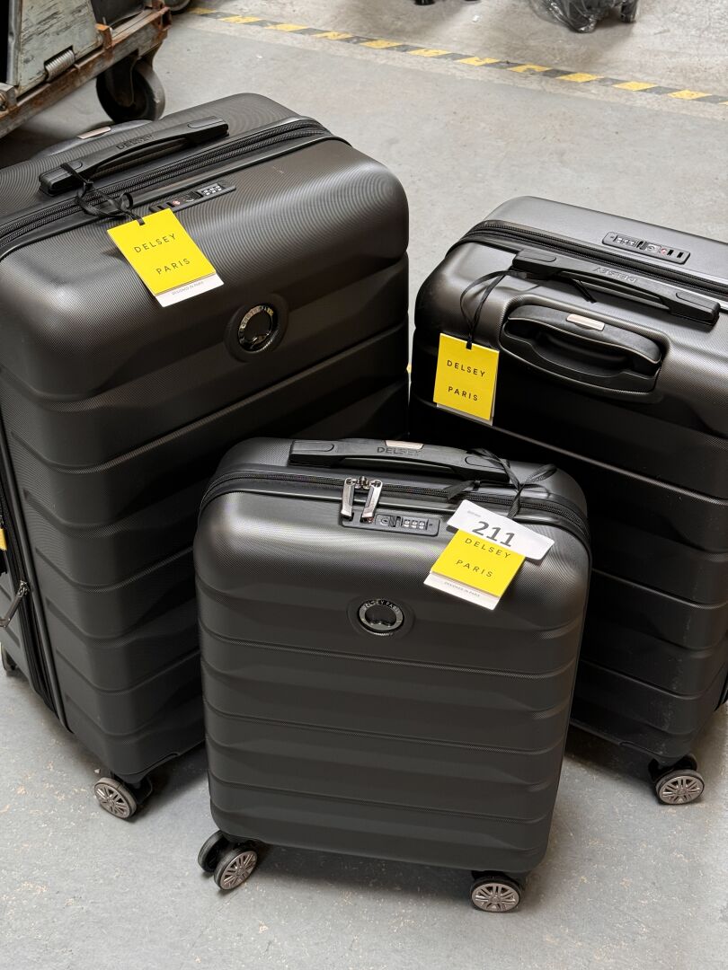 3 VALISES DELSEY AIR ARMOUR NOIR 77, 68 & 55CM (expédition sur devis) Lot issu de colis non réclamés : état de fonctionnement non garanti.