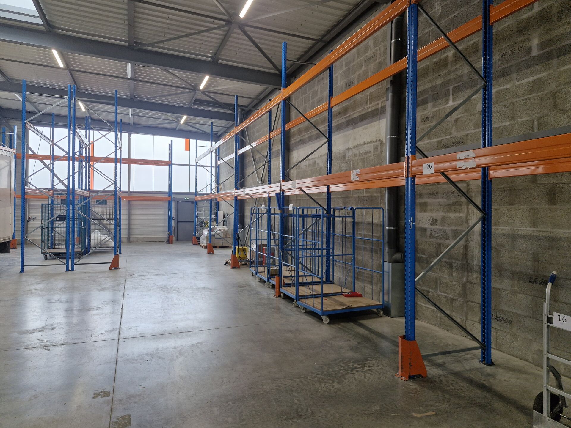 Racks à palettes composés de 20 échelles bleues environ 5 m x 110 cm et 60 lisses 3.9 m
