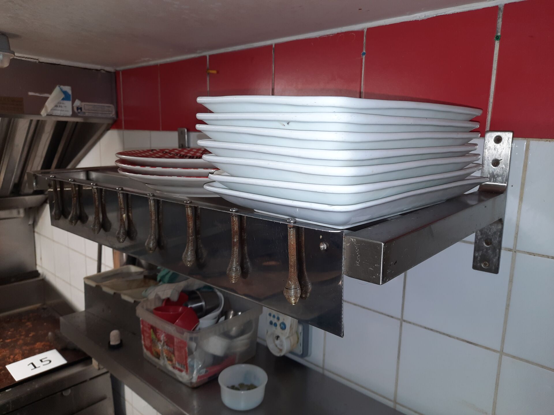 4 étagères en inox barreaudées (35 x 75 cm) Étagère en inox (20 x 70 cm) A DEMONTER PROPREMENT SANS DOMMAGE A L'IMMEUBLE LOT SITUE AU SOUS SOL - PREVOIR MOYEN MATERIEL ET HUMAIN POUR DELIVRANCE VIA UN ESCALIER