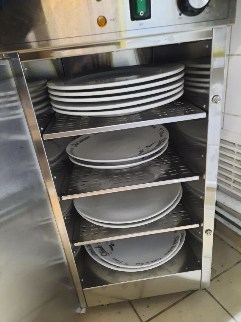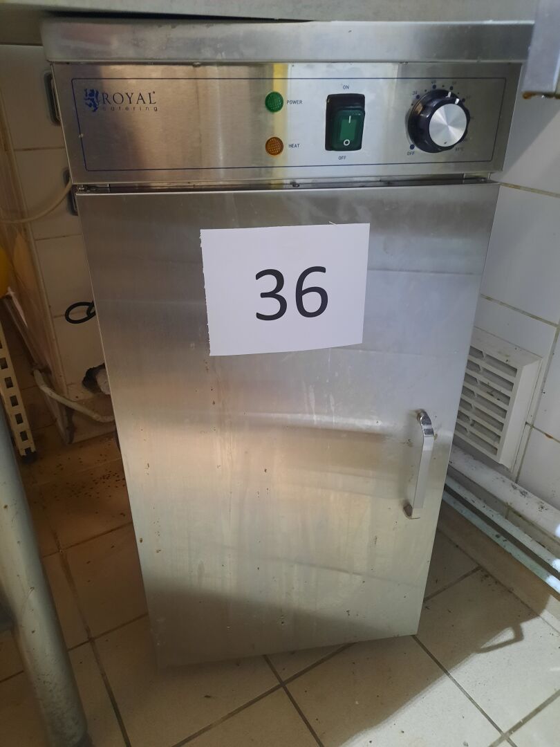 Chauffe-assiettes ROYAL CATERING en inox, roulant, à 1 vantail. 35x76x52 cm LOT SITUE AU SOUS SOL - PREVOIR MOYEN MATERIEL ET HUMAIN POUR DELIVRANCE VIA UN ESCALIER