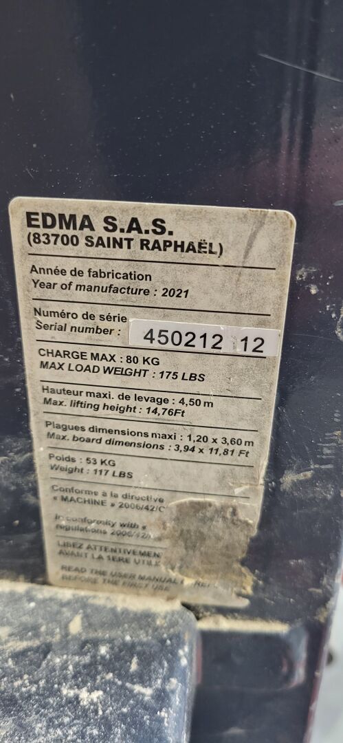 1 lève-plaque mobile EDMA PLAQUE 450 450212112 capacité 80 kg de 2021