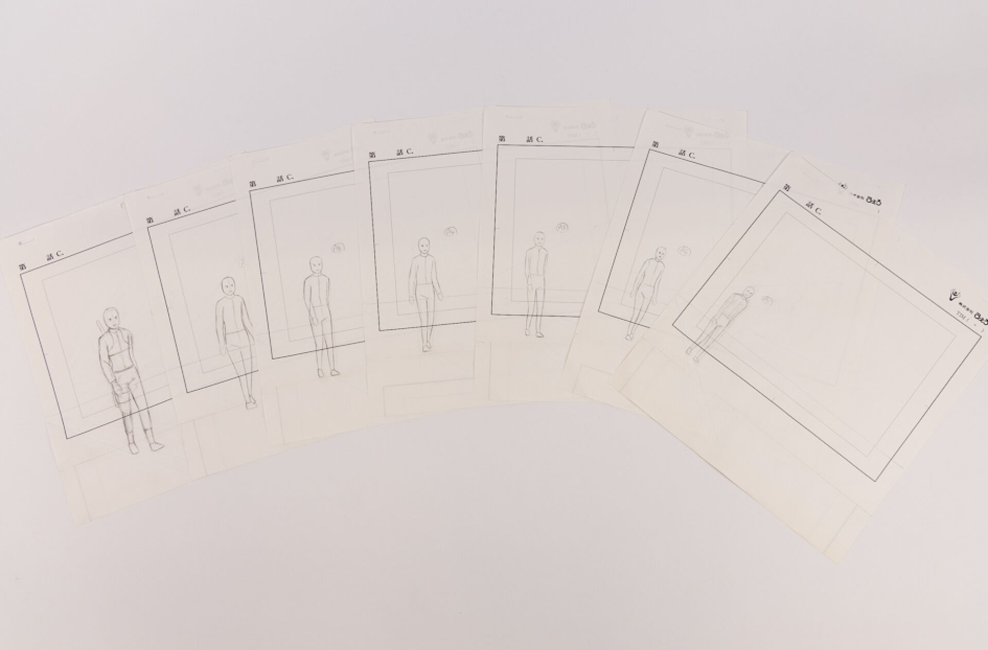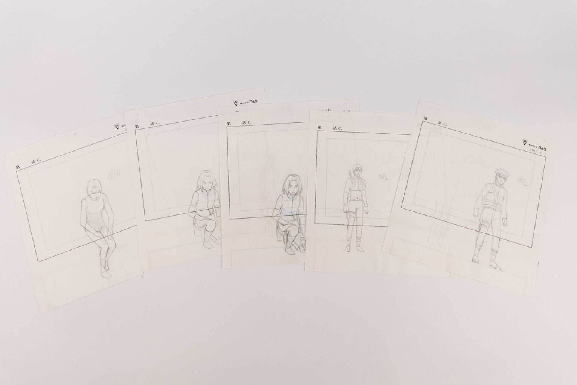 d'après l'oeuvre de Masashi Kishimoto (岸本 斉史) et Hayato Date (伊達 勇登) - Naruto Shippuden ( ナルト 疾風伝 ) Exceptionnel ensemble de douze layout à la mine de plomb et aux crayons de couleur décomposant les mouvement de Naruto, Sakura et Sai, numéroté B9 end, A1 à A8 end et C11 à C13. Haut. : 30 cm x Larg. : 26,5 cm Produit entre 2007 et 2017 par studio Pierrot.