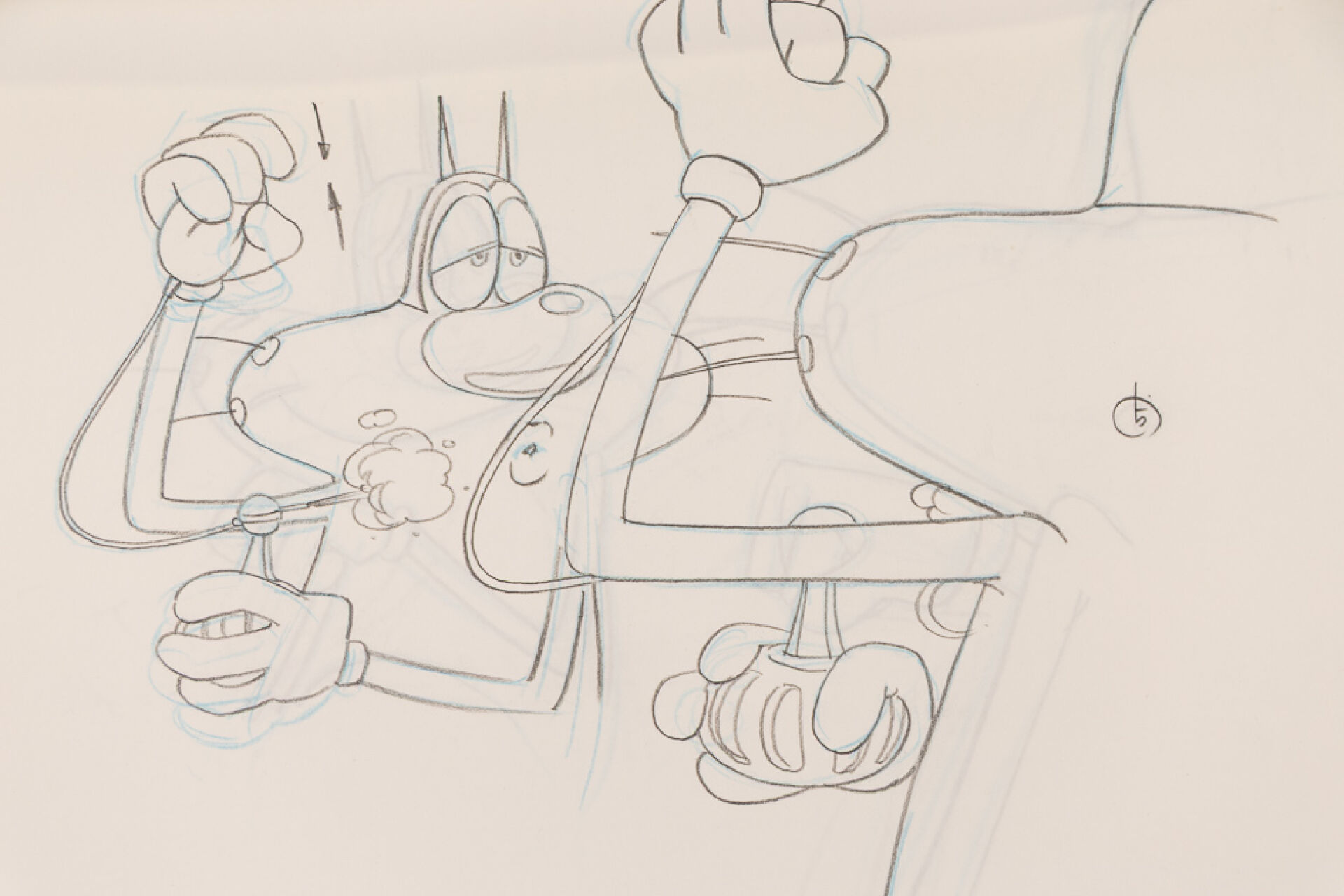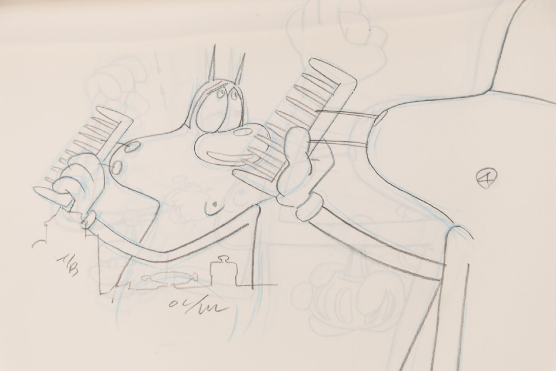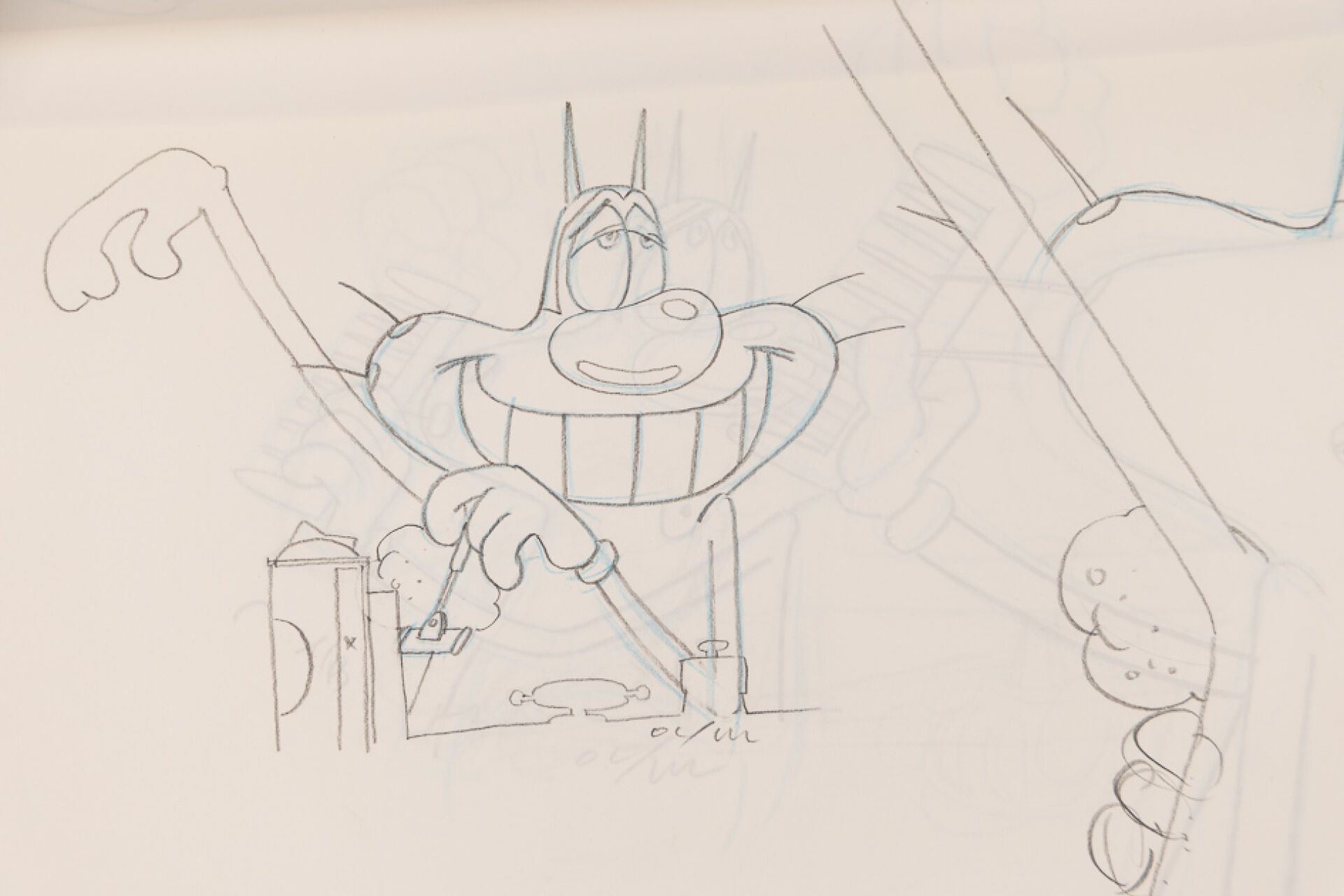 d'après l'œuvre de Jean-Yves Raimbaud et Olivier Jean-Marie - Oggy et les Cafards Ensemble de 8 dessins originaux à la mine de plomb et aux crayons de couleur mettant en scène Oggy à sa toilette. On y joint 5 time-sheets associées. Dim. (dessins) : Haut. : 26.6 cm x Larg. : 31,8 cm Dim. (time-sheet) : Haut. : 41,8 cm x Larg. : 29,6 cm Produit de 1998 à 2018