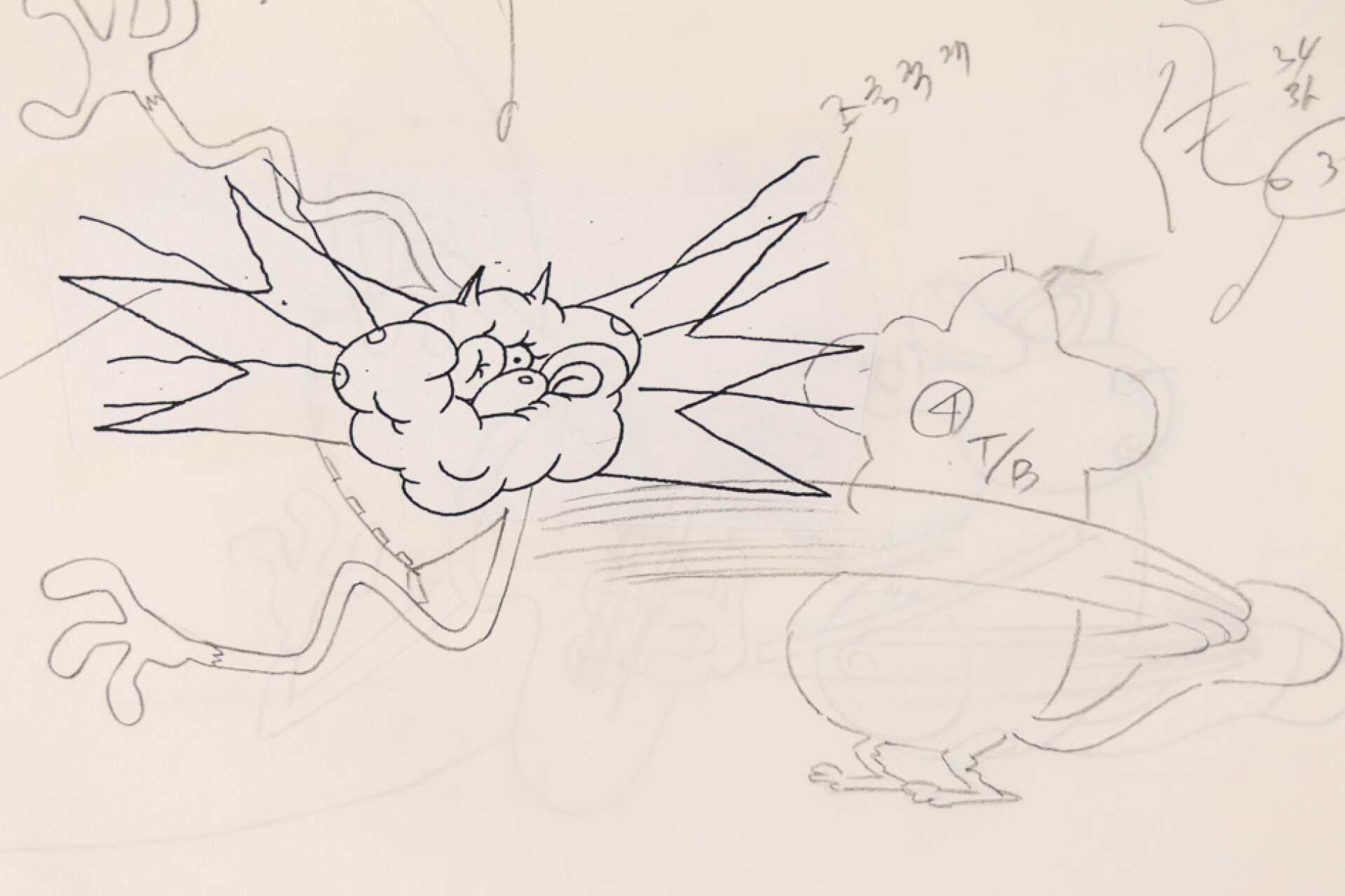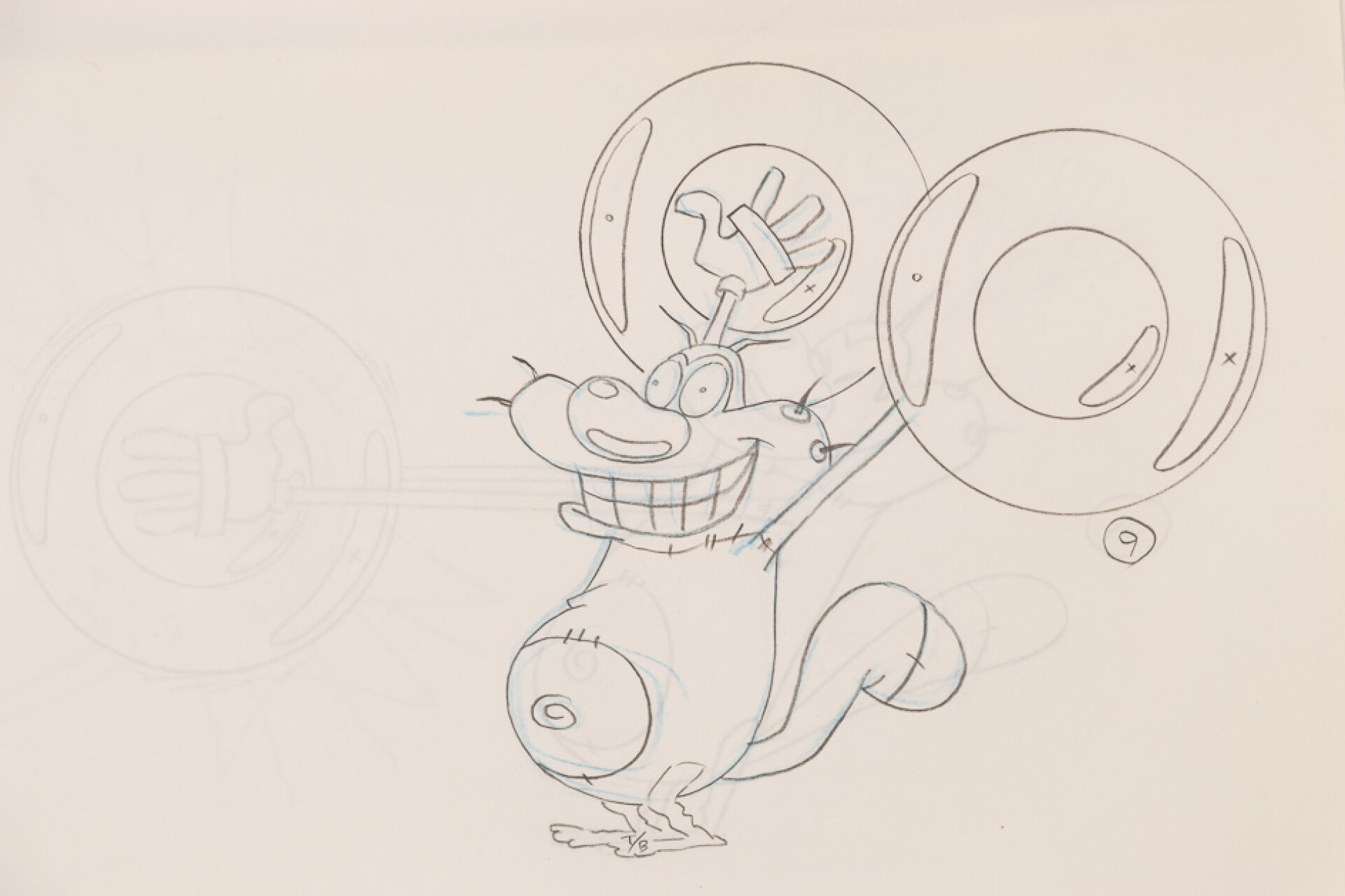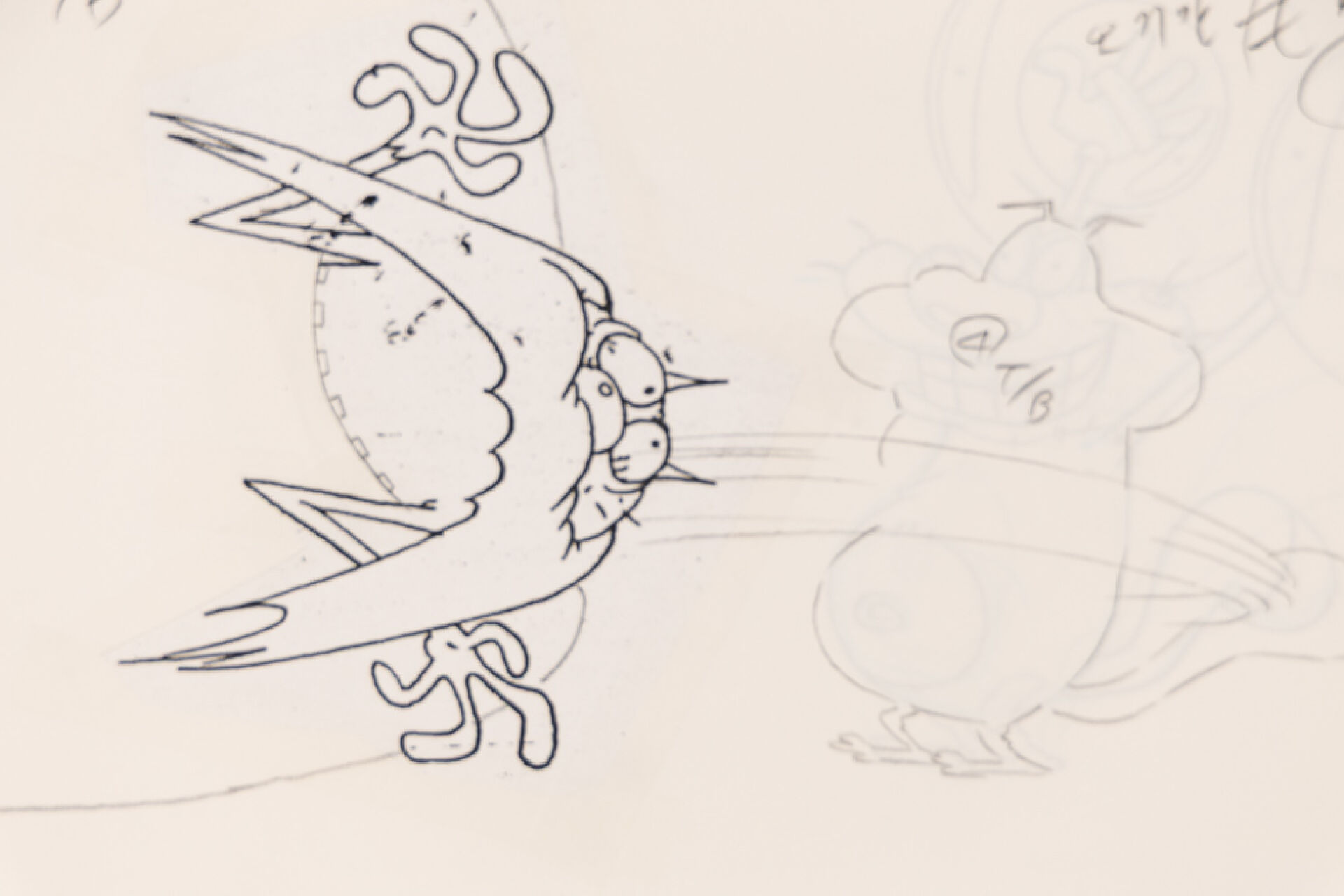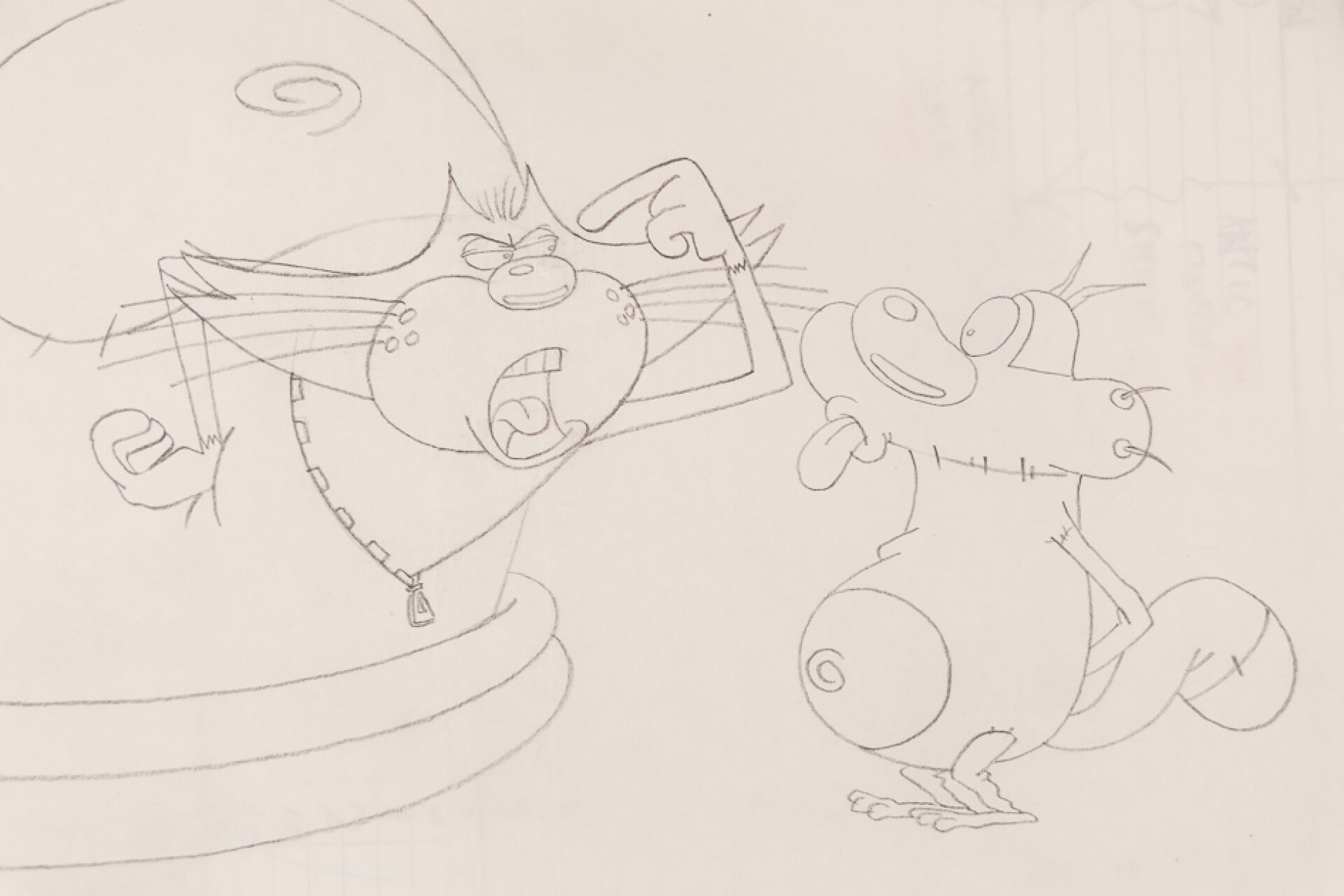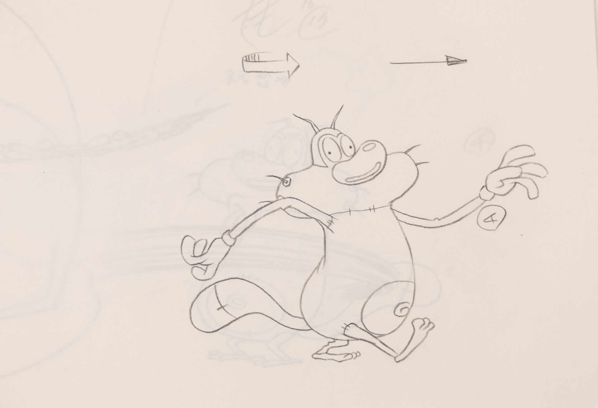 d'après l'œuvre de Jean-Yves Raimbaud et Olivier Jean-Marie - Oggy et les Cafards Ensemble de 15 dessins originaux à la mine de plomb et aux crayons de couleur mettant en scène Oggy martyrisant Jack avec des instruments de musique. On y joint 4 time-sheets associées. Dim. (dessins) : Haut. : 26.6 cm x Larg. : 31,8 cm Dim. (time-sheet) : Haut. : 41,8 cm x Larg. : 29,6 cm Produit de 1998 à 2018